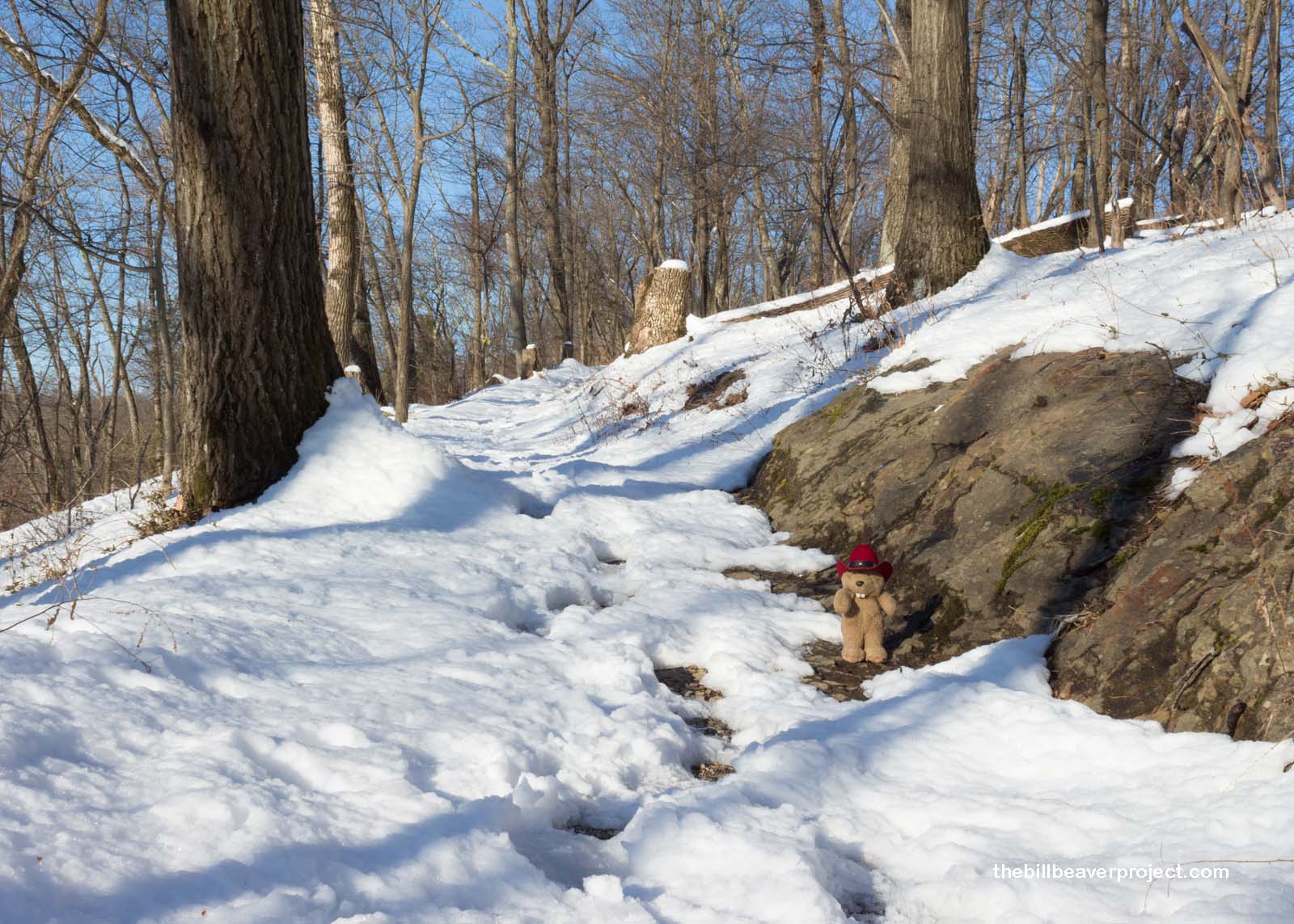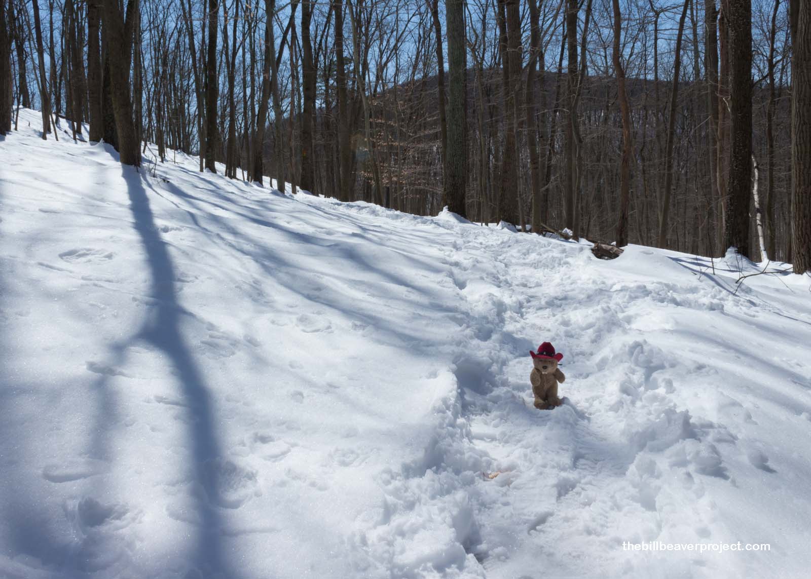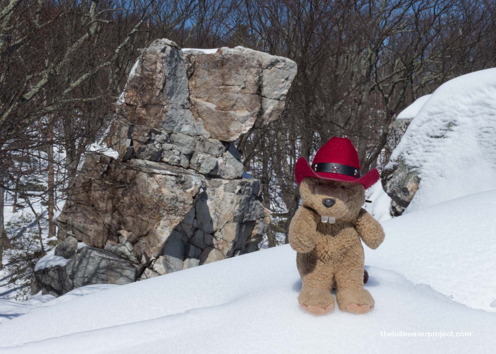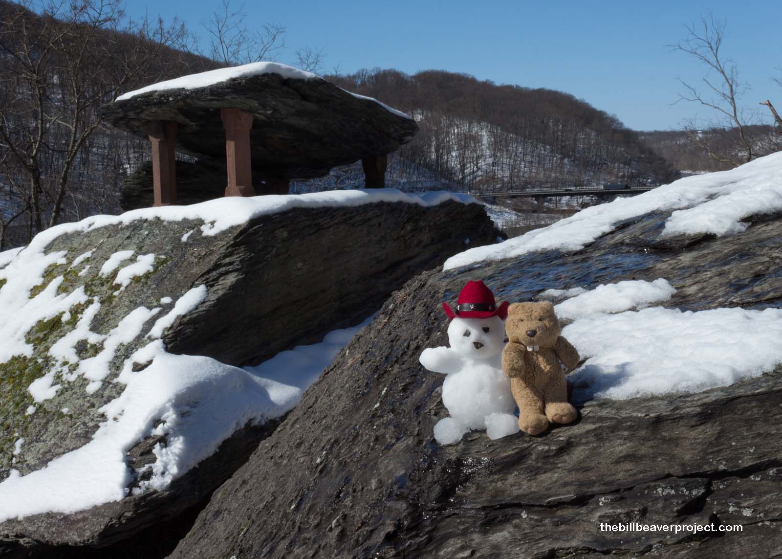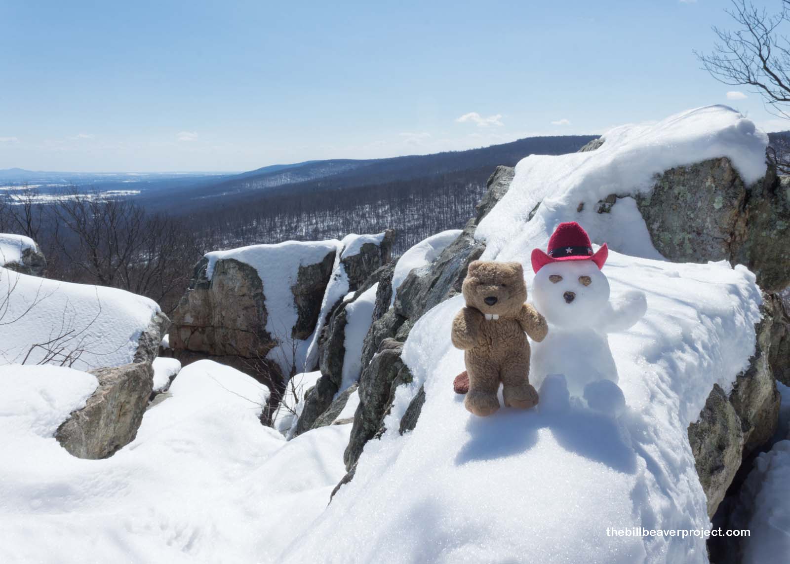 Sure enough, as I stepped out to take in the view, I knew exactly why Señor Castorieti had made this recommendation. The view of Maryland’s mountains stretched for miles and miles! I wanted my wintery friend to enjoy the scenery with me, so I rebuilt him right away! Sure enough, Catoctin had been his last words at Harpers Ferry, and he was very glad that I’d gotten the hint and brought him here for the views! He was so glad, in fact, that he frolicked too close to the edge, and when I reached out to catch him, his arm broke off! Poor Señor Castorieti. For all his many yeas, he sure hasn’t learned to be very careful. Then again, “careful” is much different for snow beavers than fur beavers!