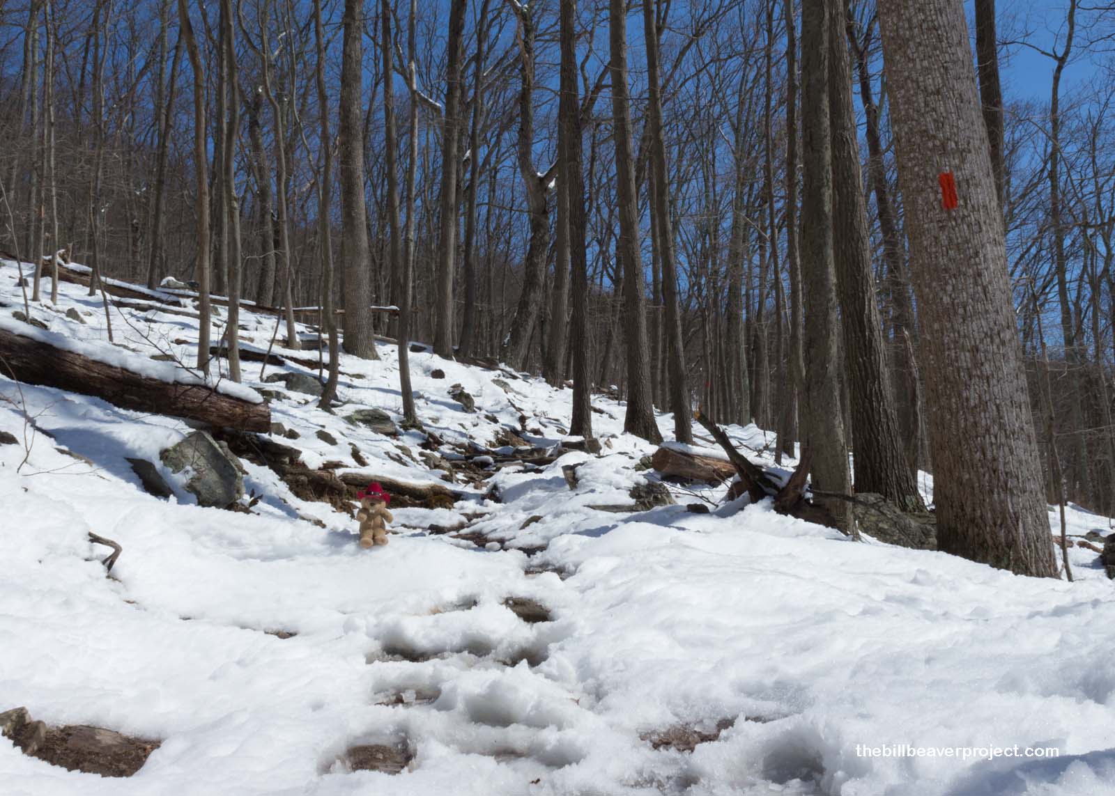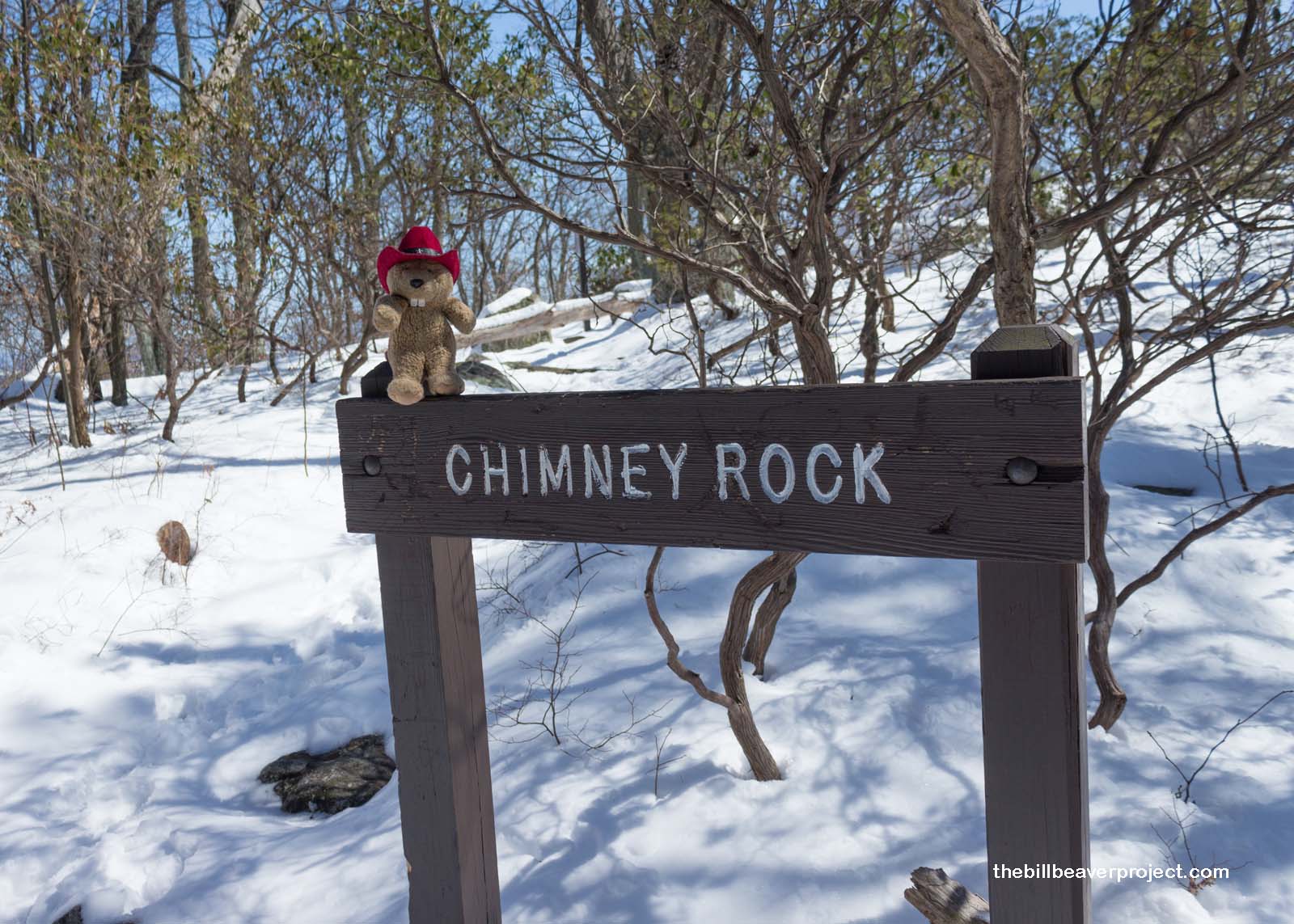 After slowly and carefully picking my way back to the main trail, I set off for my next unique rock, Chimney Rock, only the footprints leading that way had come to a complete halt! I wondered why no one had wanted to continue down the red-blazed trail after the last snow storm, but I wanted to see what this version of a Chimney Rock looked like!