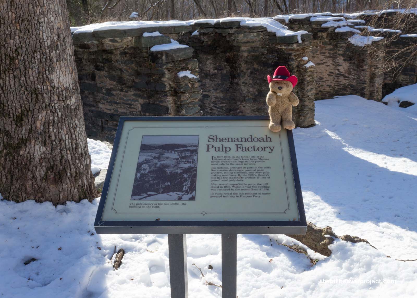 I passed the remains of the Shenandoah Paper Factory, the last remains of water-powered industry at Harpers Ferry. At its height in the 1920s, it was churning out 15 tons of wood pulp per day, but the Great Depression and a big flood in 1936 left it in the state where I found it today.