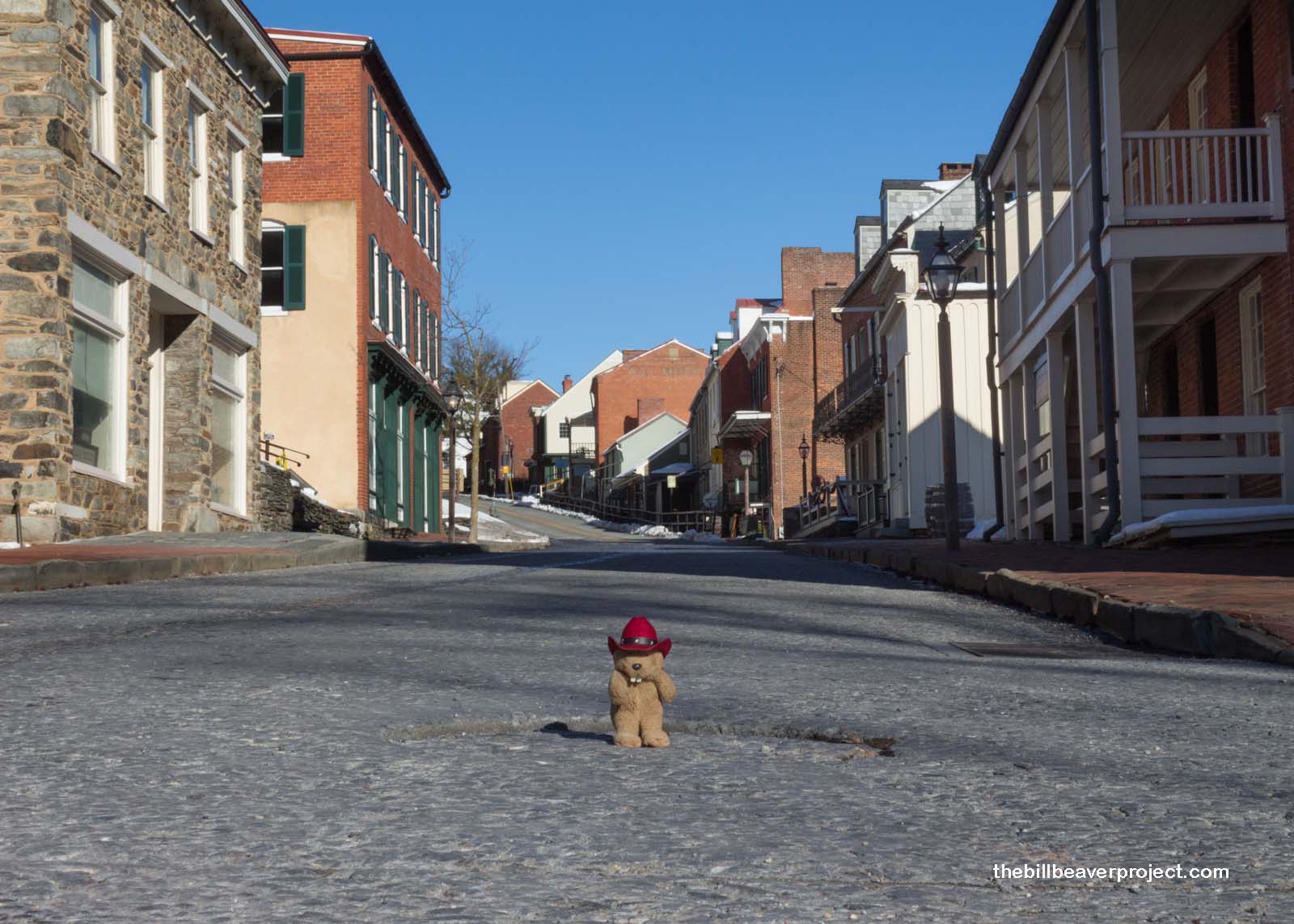 Less than a mile later, I arrived in the Lower Town portion of Harpers Ferry. This charming town, perched at the confluence of the Potomac and Shenandoah Rivers, had its origins in 1751 when Robert Harper decided this would be a great spot for milling and transport and bought a patent to set up a town. This morning, it was quiet and chilly, and with no one else around, I would have to wander more to give the shops time to open and start serving hot chocolate!