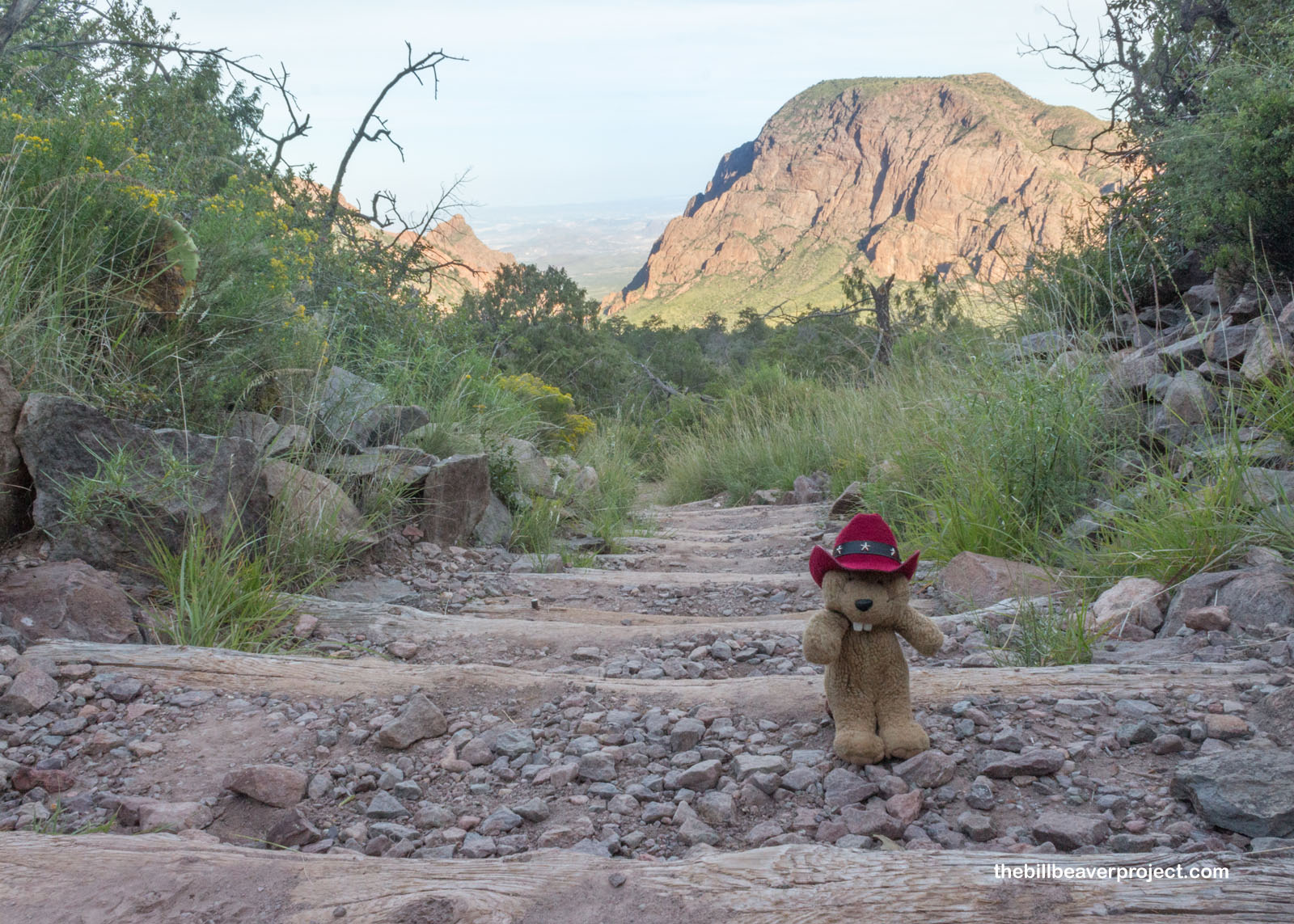 Anyway, I got up this morning and took in the sunrise views of the mountain lions’ domain, and big cats or no big cats, it looked like a spectacular day in a spectacular setting! My goal today was to summit Emory Peak, which at 7,825 feet is the highest mountain in Big Bend National Park. I could see the peak from my balcony, which gave a pretty good sense of what the hike would be like, so I set off!