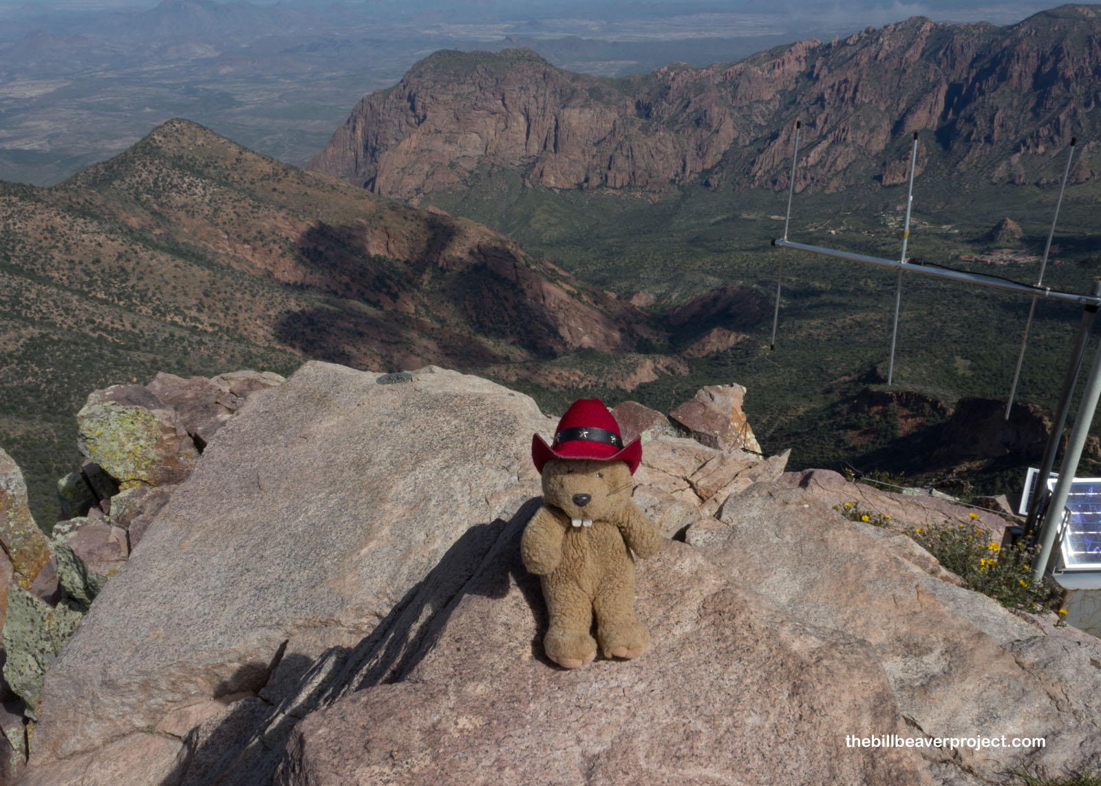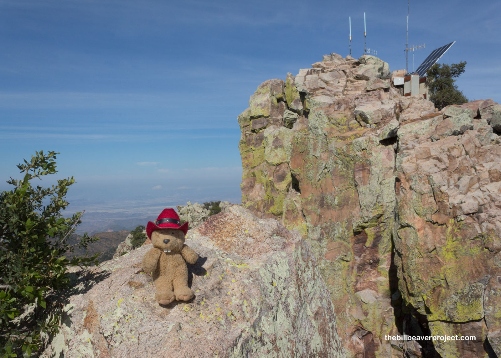 At last, I reached the real summit, broken up by the antennae that power Big Bend’s two-way radio system. The desert stretched for miles on all sides. In the distance, I could see the V-shape of Santa Elena Canyon, and all to the south, the Mexican state of Coahuila! I settled down to have some snacks and keep my eye on a distant circling hawk.