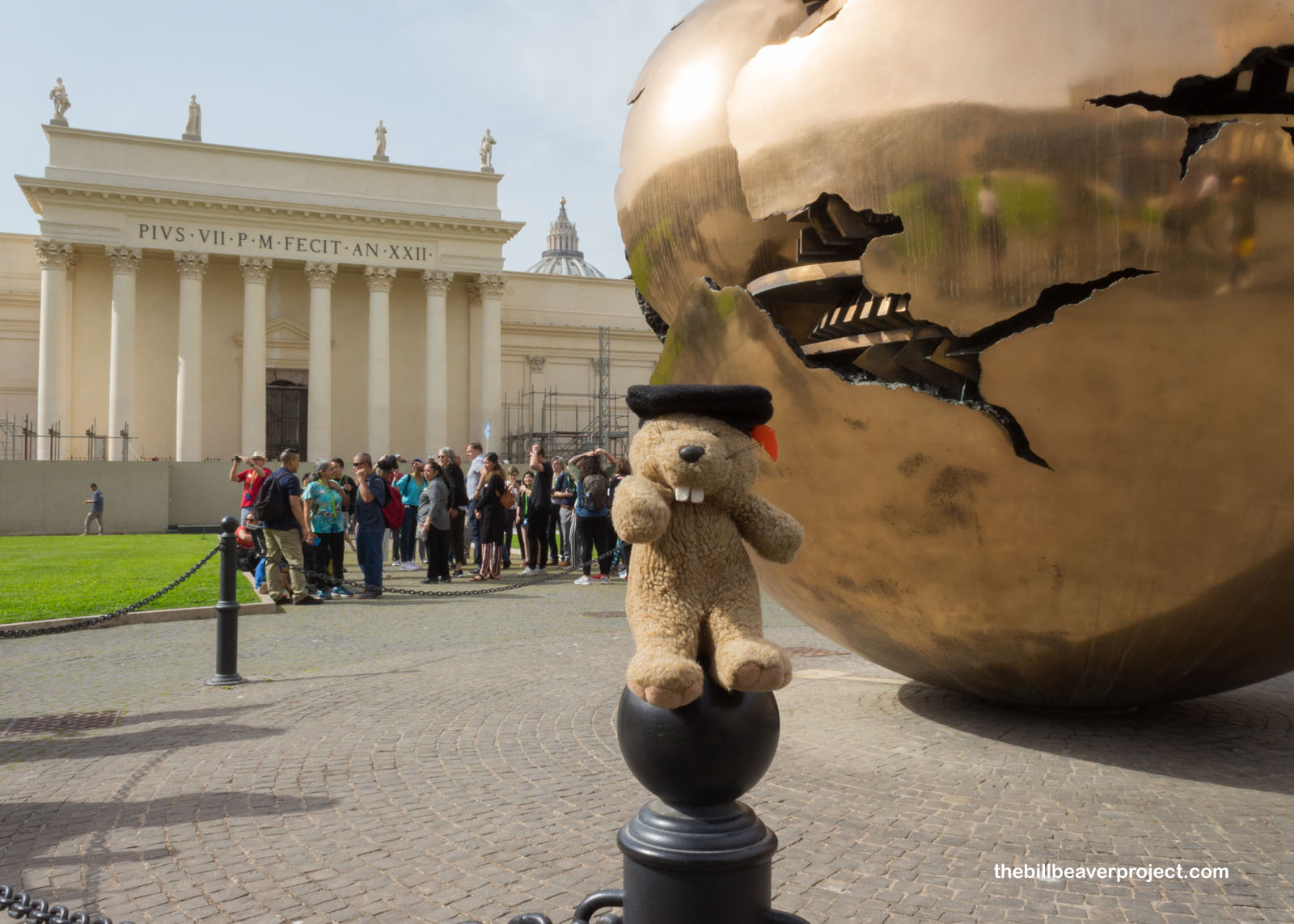 We took a break from the art to step into the sunshine. At the center of the Cortile della Pigna (Pinecone Court) turns a huge bronze globe called Sphere within a Sphere by Arnaldo Pomodoro! Added in the 1960s, and later designed for spaces around the world, this brilliant sculpture has two layers: the smooth spherical outside represents the ideals of Christianity, while the inside shows the infinitely more complicated workings of the world!