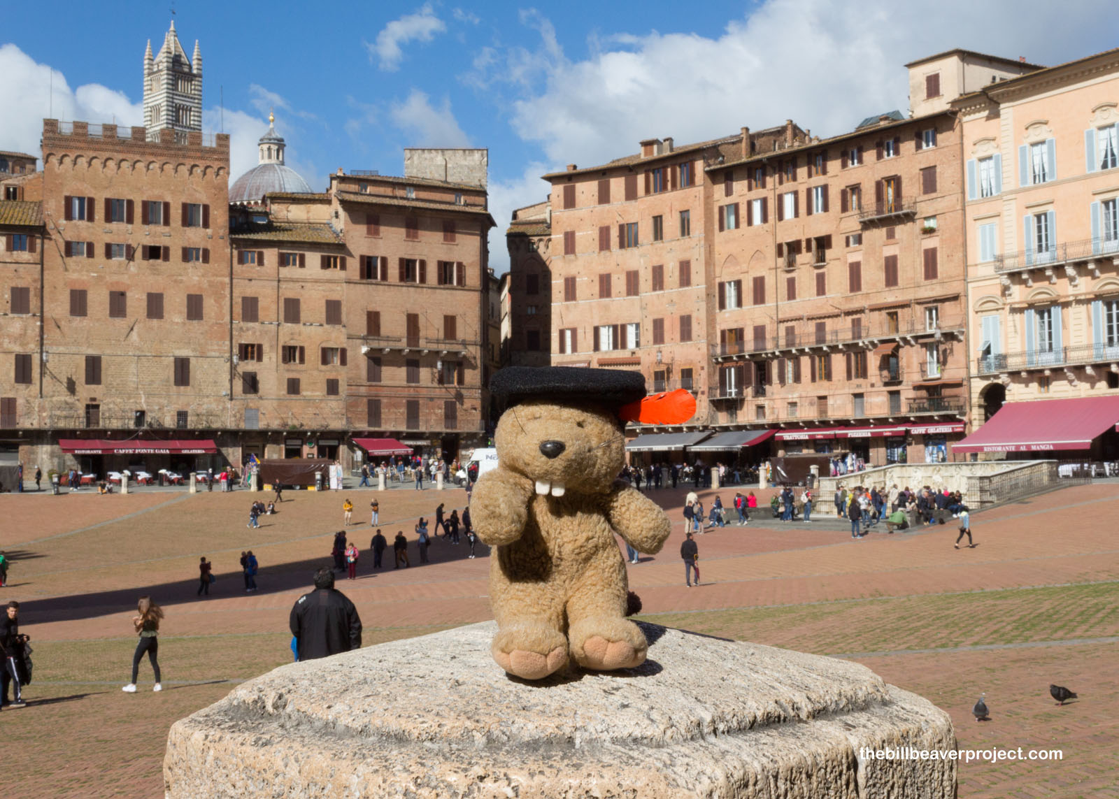 Today, as it was last night, the Piazza del Campo is a great place to enjoy a gelato while watching the people, the dogs, and of course, the gleefully swooping swallows whirling around the Campanile!