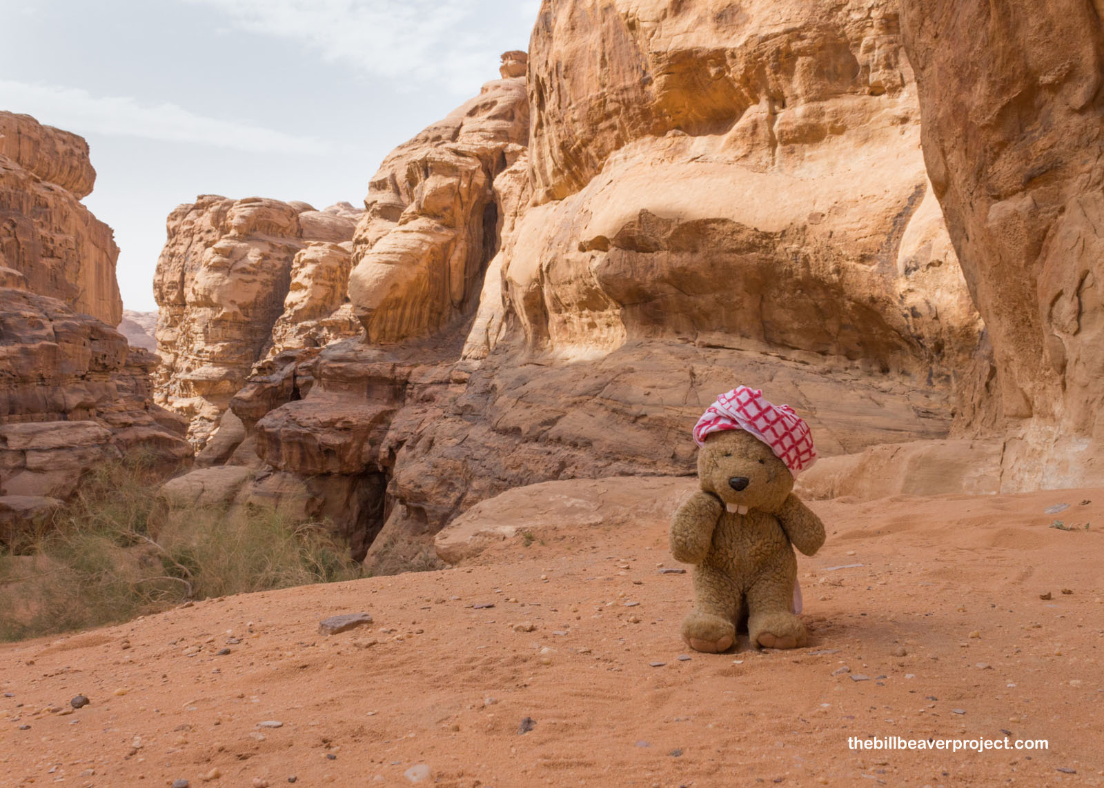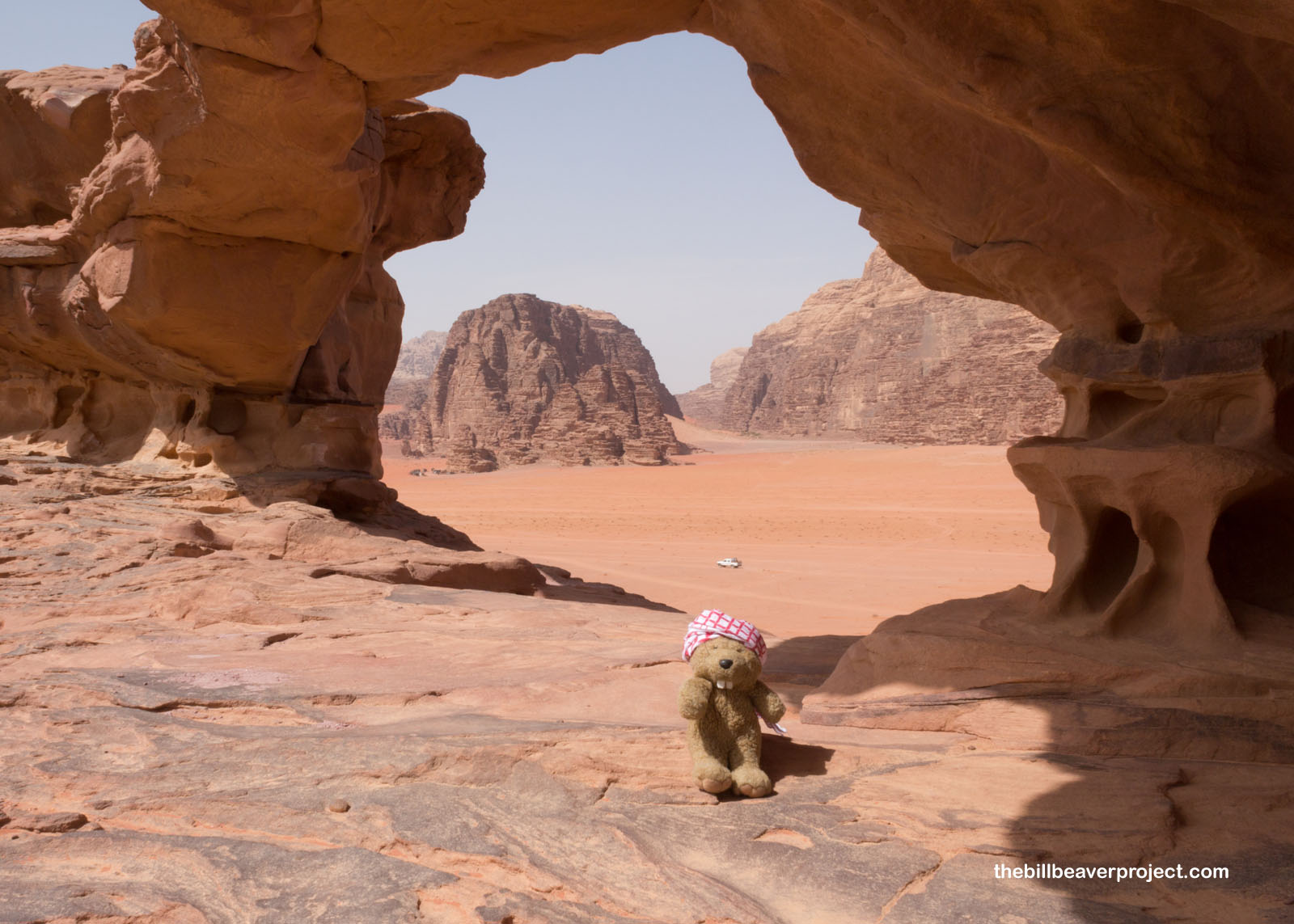 Though there wasn’t going to be time to visit the Burdah Rock Bridge, which was a 6-hour climb, after a sack lunch, we headed to another rock bridge, called the Little Rock Bridge, which still offered up an amazing vantage point for photos! I also learned at this stop that I still had one more adjustment to make to my keffiyeh to fit how local Bedouin folks wear it. I think I’m good to go now!