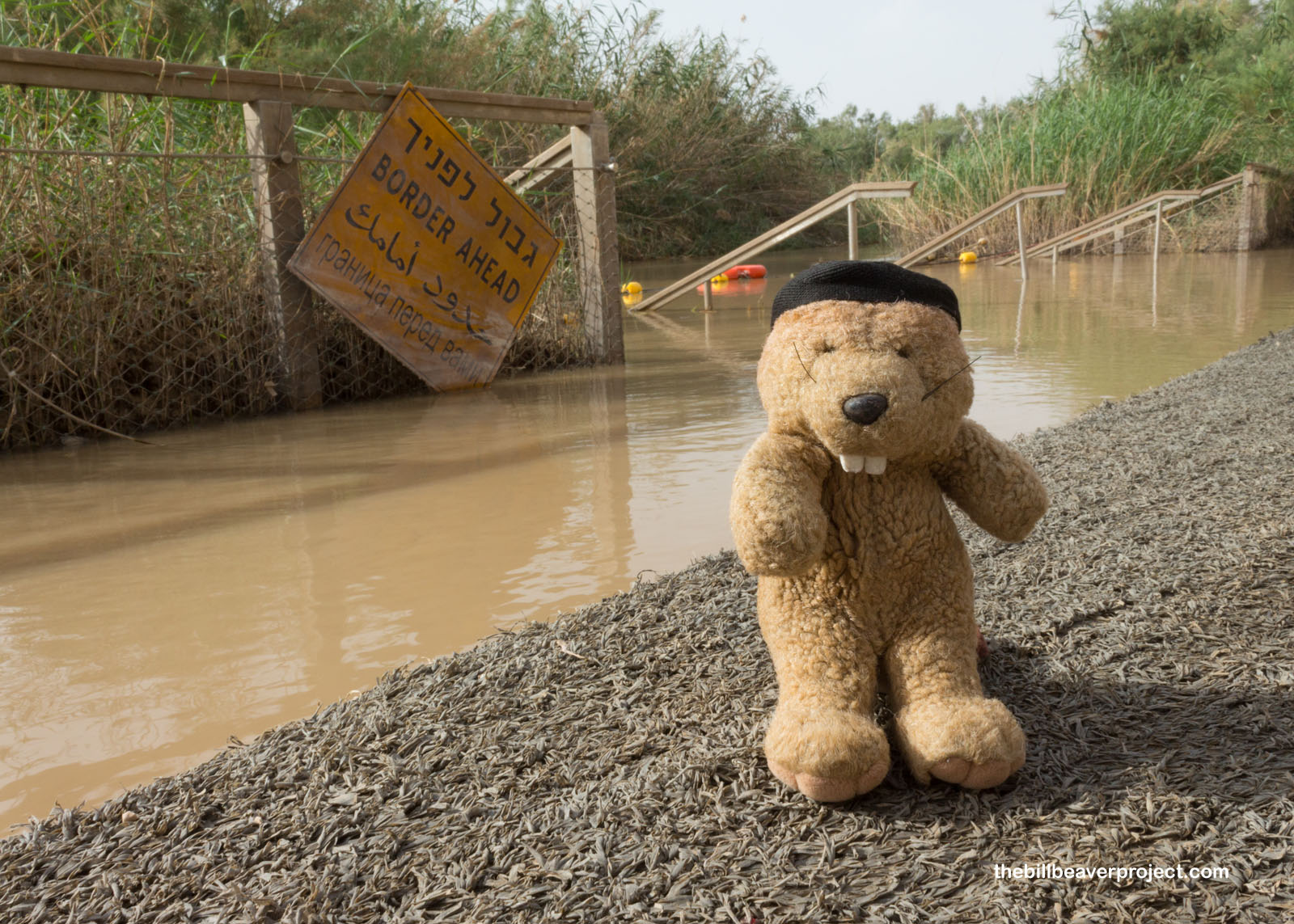 Our van motored east, back to where I entered Israel just yesterday, until we arrived at our first stop, the Qasr Al-Yahud Baptismal Site on the Jordan River. This site is important to lots of pilgrims, because it’s believed to be where the ancient Israelites first entered the Promised Land, where the prophet Elijah ascended to Heaven, and where John the Baptist did his signature work on Jesus of Nazareth! This whole site was inaccessible between 1967 and 1994 because of conflicts with Jordan, but today, it’s monitored by the Israel Nature and Parks Authority and draws lots of pilgrims to be baptized in the muddy waters of the River Jordan!
