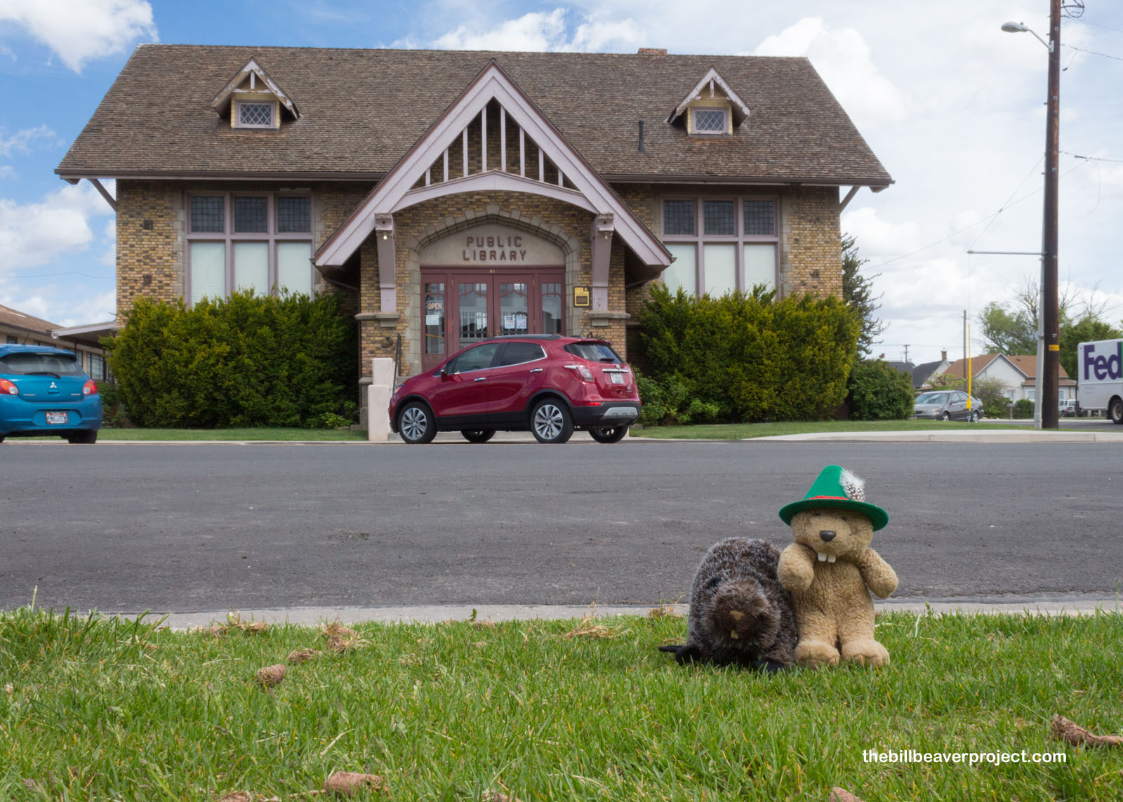 From here, we started down on our historical library tour. Though libraries are largely still closed because of the COVID-19 pandemic, there’s still plenty to admire about them! Salina’s public library is Nationally Registered as a remnant of the New Deal’s public works in rural Utah! The Great Depression hit Utah very hard with a 36% unemployment rate, so a lot of federal funding came in. This library, built between 1936 and 1937, is a combination of Art Deco and Prairie School styles!