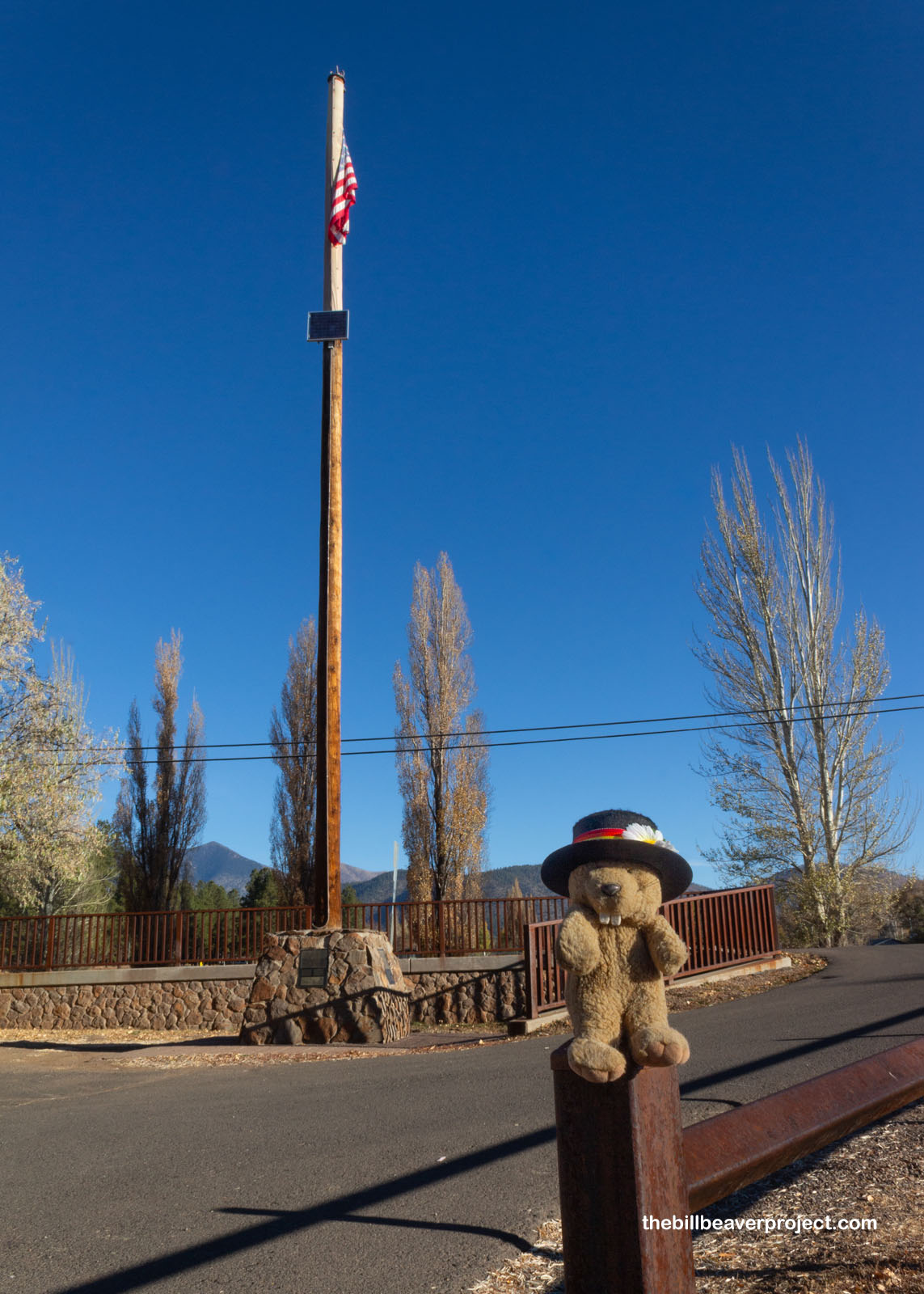 But I wasn’t here to recline in luxury! Far from it! I had business to attend to up north in Page, but first, I wanted to see Flagstaff’s flagstaff, something I’d completely skipped back in 2016! Like the Ice House, Flagstaff’s name is very literal. Before it was even a city, this was a lumberjack camp, and those lumberjacks, to celebrate July 4, 1876, nailed an American flag to a ponderosa pine pole and set it up in the middle of camp, calling it Flagstaff! The one that’s here today is a replica, but it’s still standing on the original site!
