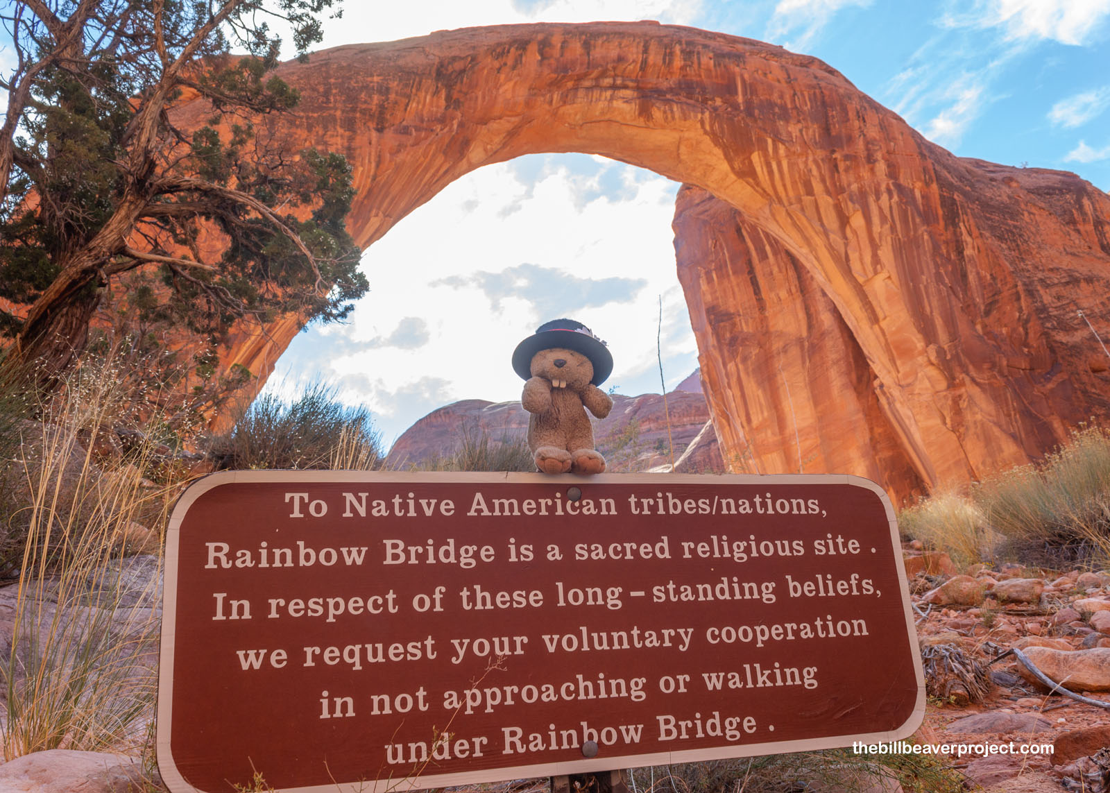 It’s been a wonder for a while! It’s significant to six different tribes in the region, which is why, in 2017, The National Park Service designated Rainbow Bridge as Utah’s first Traditional Cultural Property. It’s really hard to find all these tribes’ names for the bridge though! The most accessible is the Diné, which is Tsé’naa Na’ní’áhí, the Rock Span. Others like the Hopi (Shu-he-moe, the Beautiful) or Paiute (Barahoine or “rainbow”) seem to be interpreted by English speakers and are hard to research. Either way, multiple tribes are fighting to limit the number of visitors to this space, because tourism can easily disrupt spiritual practices! I thought it would make more sense if this sign just said this is a sacred site, rather than limit it to “others.”
