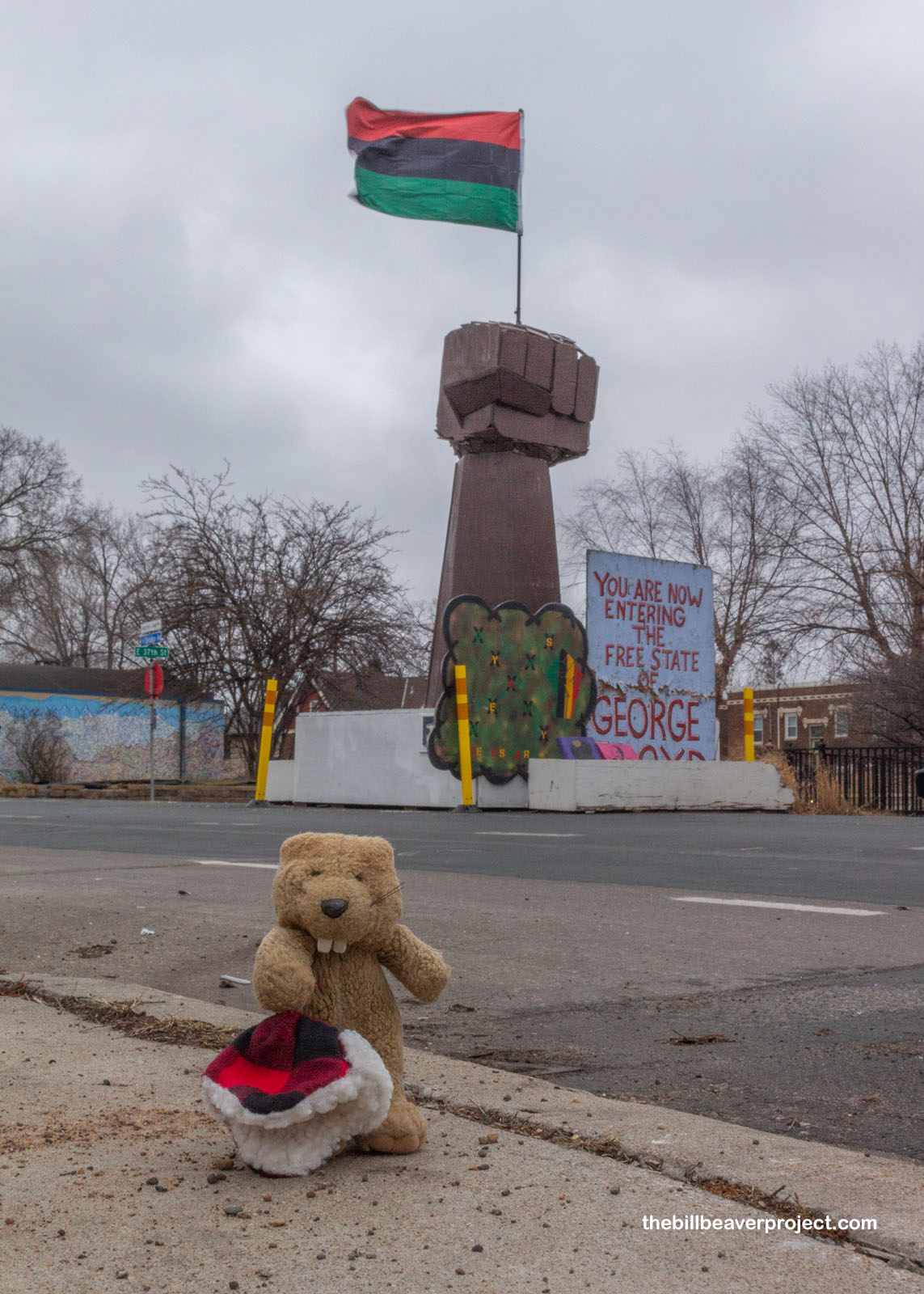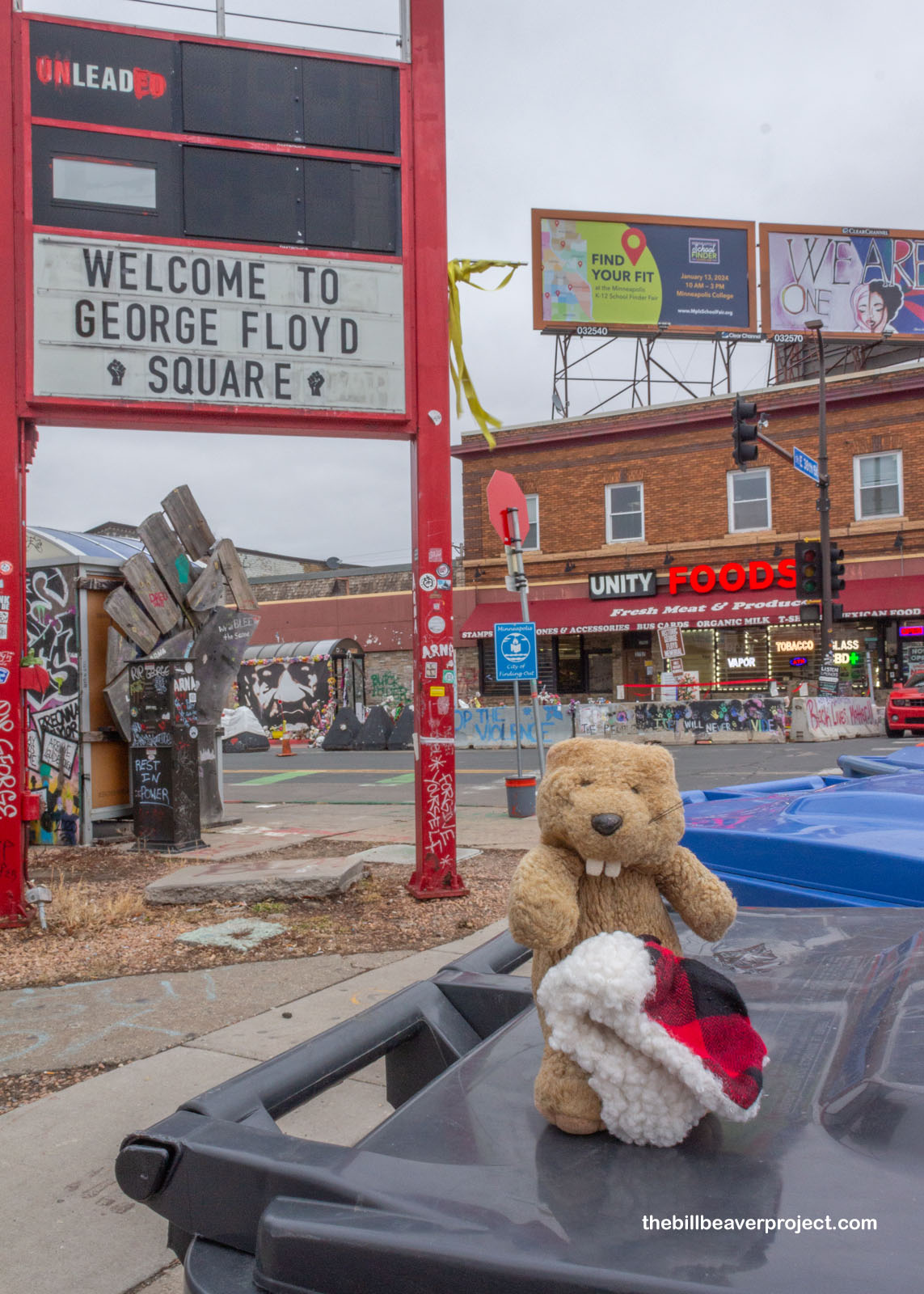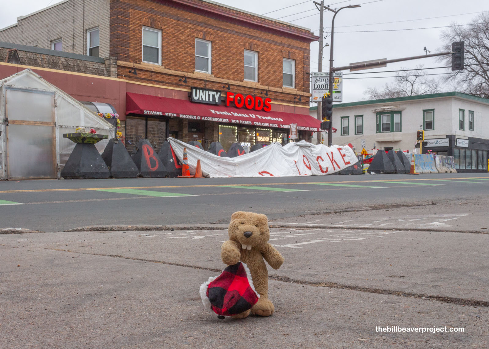 The square where police choked George Floyd to death on May 25, 2020 was still very raw. The sidewalk in front of what was Cup Foods, where he took his last breath, now called Unity Foods, was still completely barricaded off, but filled with flowers and teddy bears in his memory. It’s the first stage of the George Floyd Global Memorial. But the feeling here was unlike any I’d felt in all my years of adventuring to sad places. It still felt raw. It still felt sad and angry. It smelled of burning.