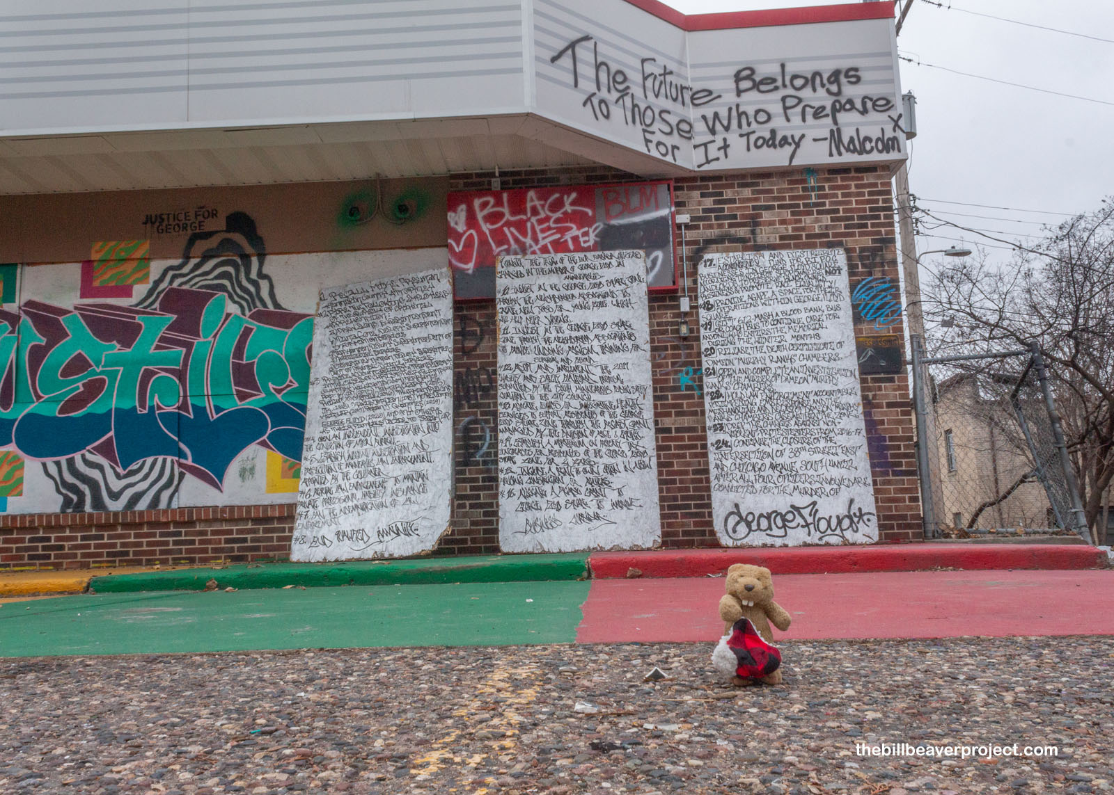 In some ways, this square is both a monument to a moment and a platform for building a new foundation for the community. At the burnt out Speedway gas station across from Unity Foods, there were posted 24 goals for the square and beyond, some of which are already in practice! Out-of-use bus stations are now book and clothing donation hubs, while an organization called 612 MASH provides medical services for anyone in the square who needs them. The wound here was very deep, but there are definitely signs of healing.