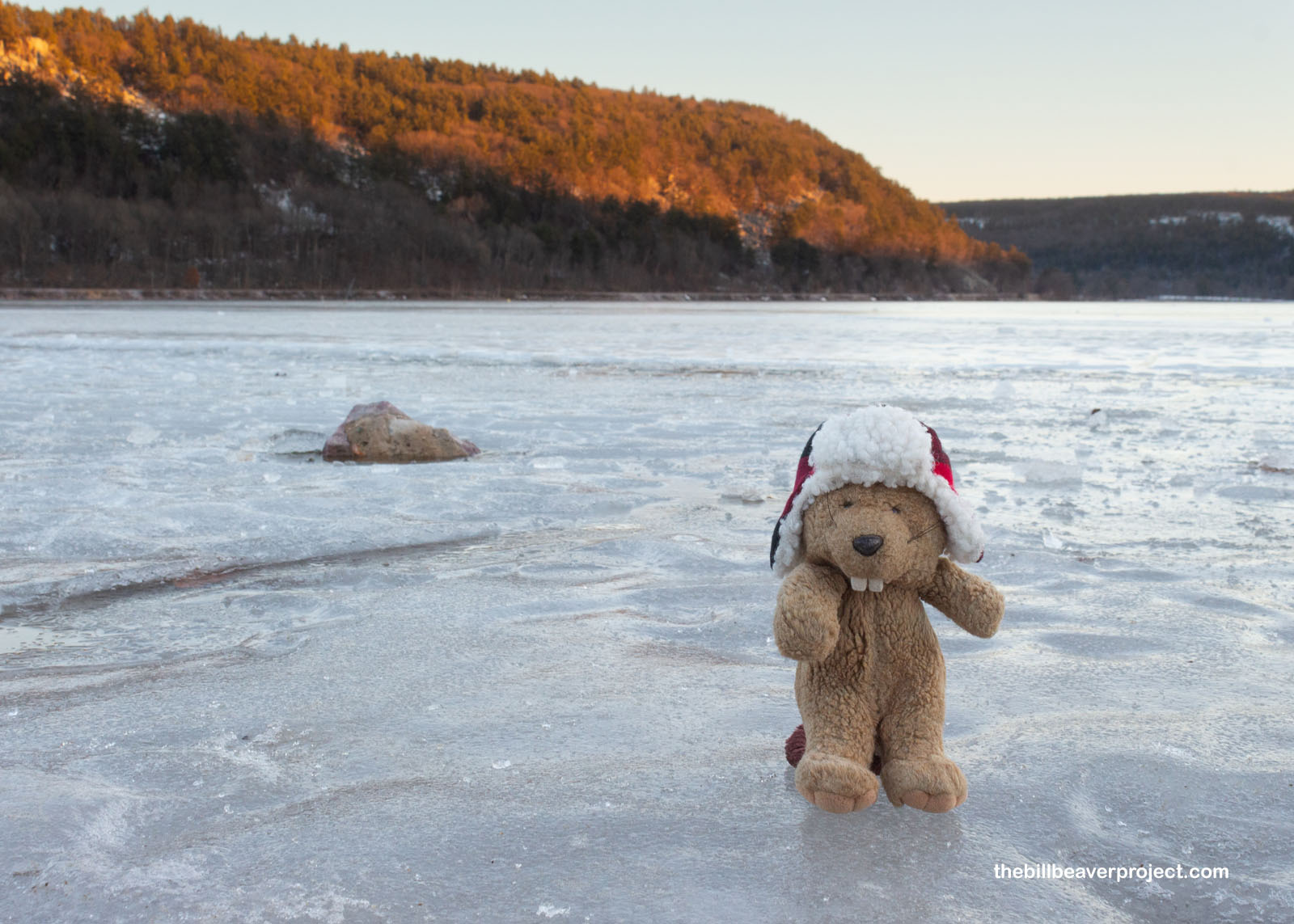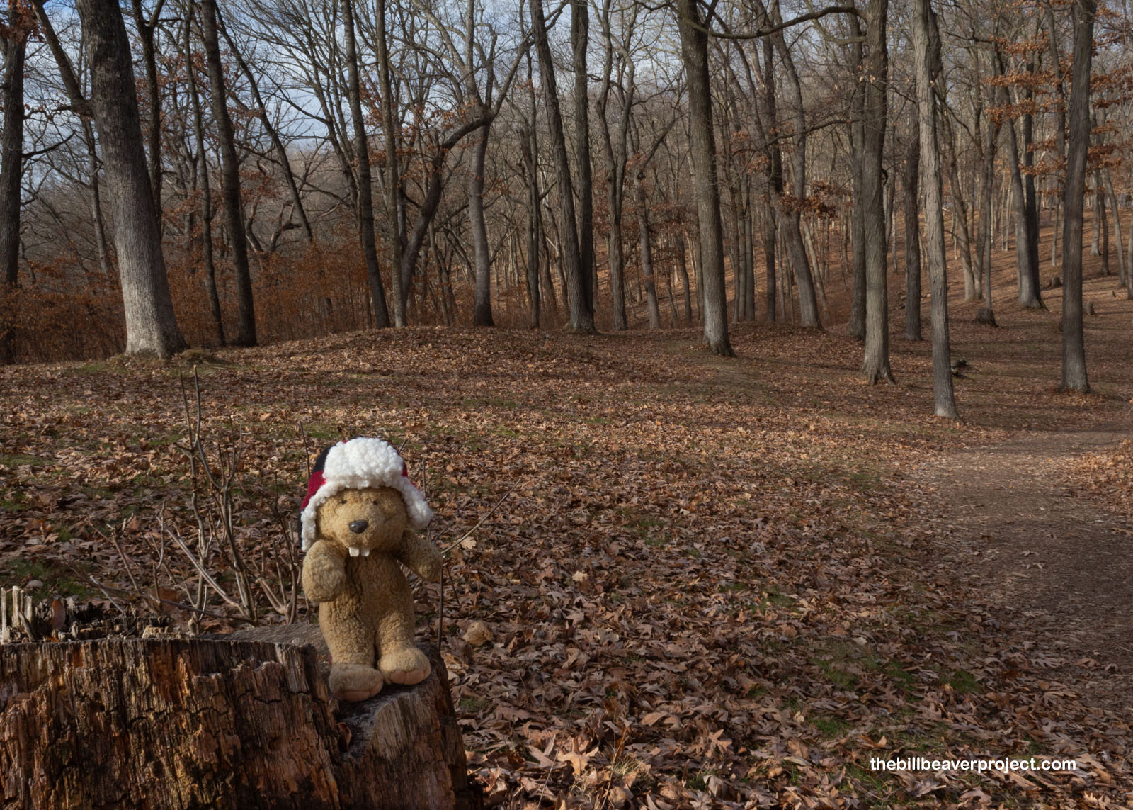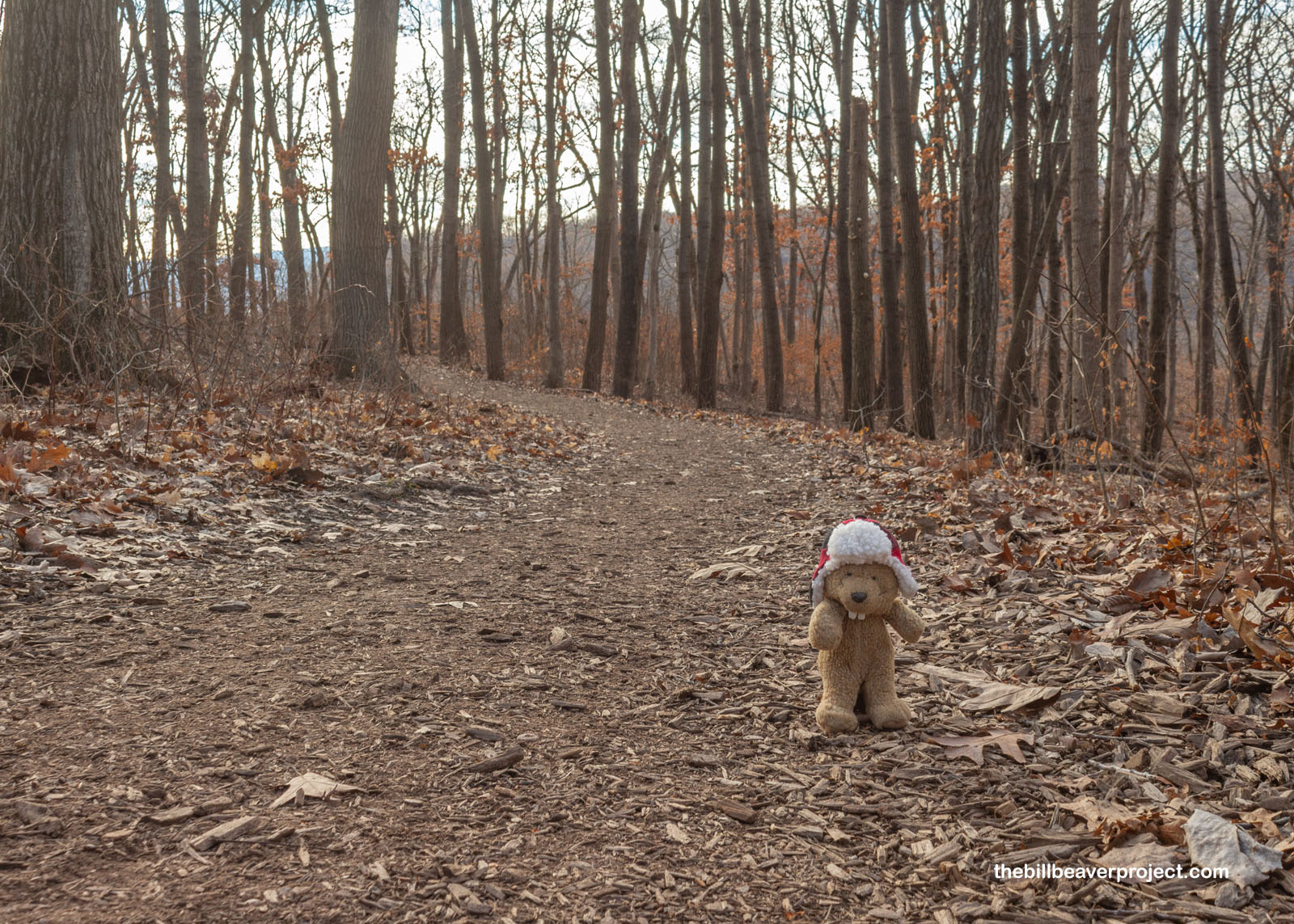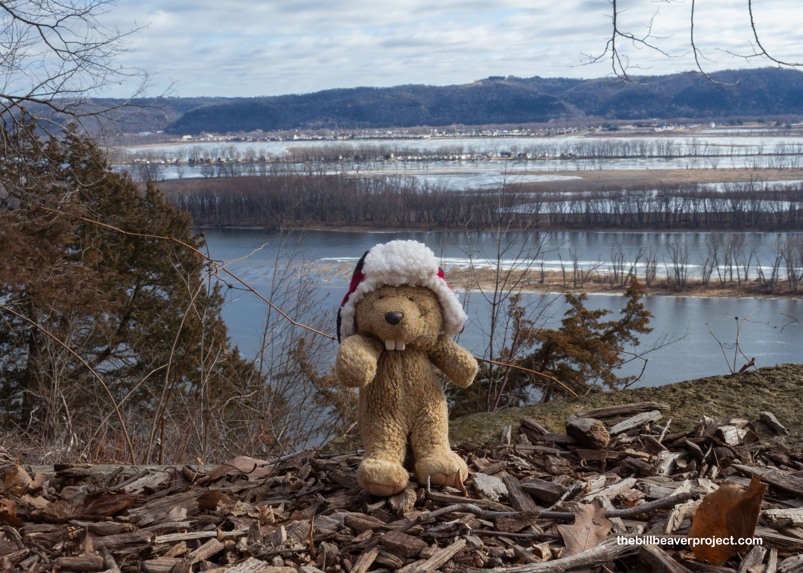 At the end of the loop was the Fire Point lookout, certainly not the most fiery at this time of year! From here, I could see out across the mighty Mississippi River into the snowy state of Wisconsin! It looked super cold over there, even though it was less than a mile away on the exact same day, but it was also super pretty! I’d been on the fence about crossing that state line on this trip—literally!—but if I could get to the Marching Bears and back fast enough, I might have just enough time to set foot in the Badger State! I hustled back down the Fire Point trail and made my way to the park’s South Unit!