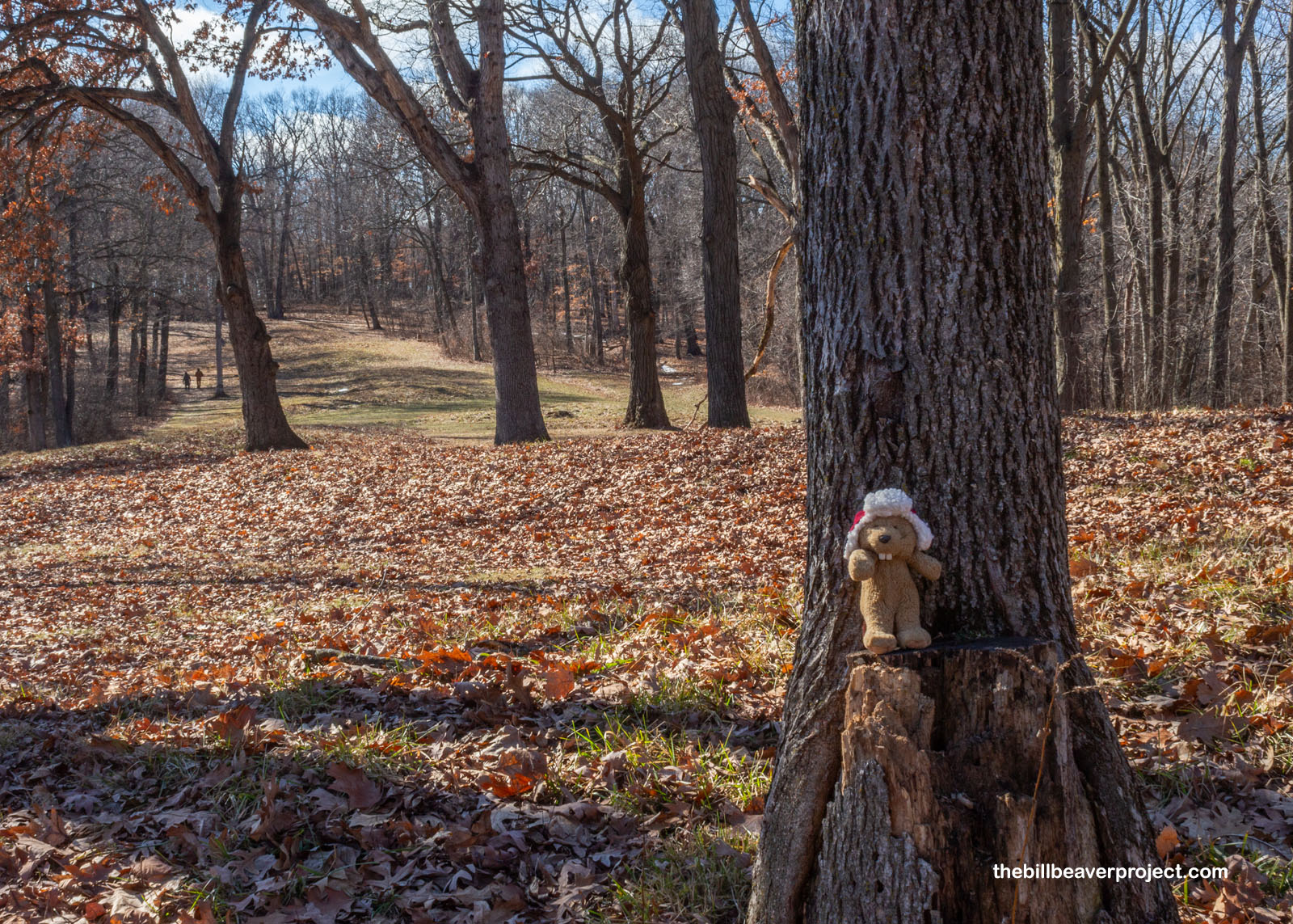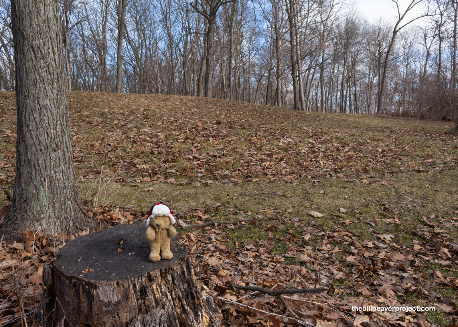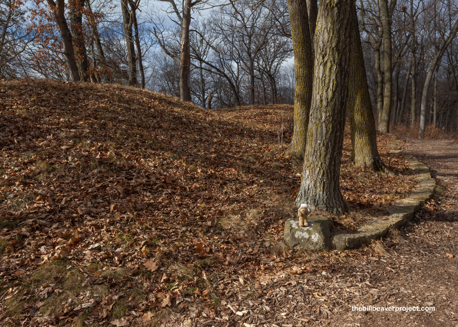 I walked along the train of mounds, wondering if there were folks buried inside, and if so, what their names might have been, what they might have thought about this strange new world if, by some magic, they could emerge from the ground and get a good look! Maybe the Earth Bear is guarding their secrets, even if it couldn’t protect most mounds across the country. It was well worth the stroll to see these Marching Bears, but I think it would have been even better in the spring when the grass was green and the mounds groomed for viewing!