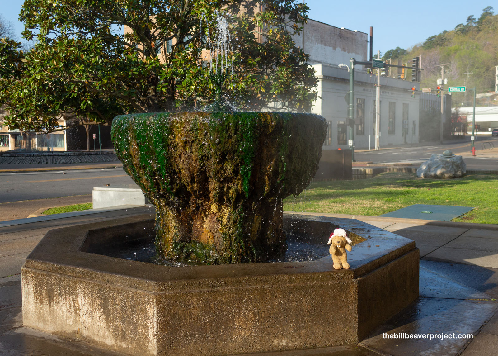 All up and down Central Avenue in downtown Hot Springs, Arkansas were hints at what lay under the street. There were steamy fountains covered in calcium deposits, just like I remembered from Hot Springs State Park in Thermopolis, Wyoming! Just like in Thermopolis, this water, rich in silica, calcium, magnesium, sodium, and potassium, has long been sought out for health and wellness, whether by bathing in it hot or drinking it cold, straight out of the ground!
