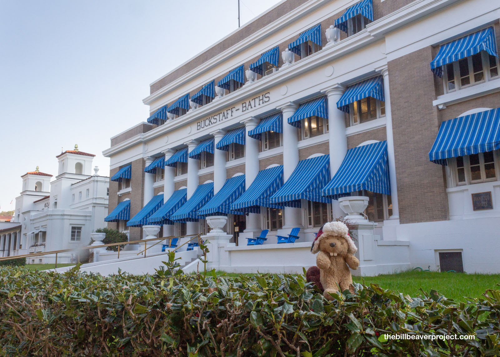 As the sun peaked over the rooftops of Bathhouse Row, I beheld the Maurice, designed by George Gleim, Jr. and opened on January 1, 1912. It was the only bathhouse on the row with a swimming pool! Next to it, the Hale Bathhouse is a hotel today, but it’s also the oldest structure still visible on Bathhouse Row, dating back to 1892 when it was constructed by George and Fremont Orff! Underneath the Hale (named for early bathhouse owner, John Hale) is an open spring and thermal cave, which are still open but not in use!