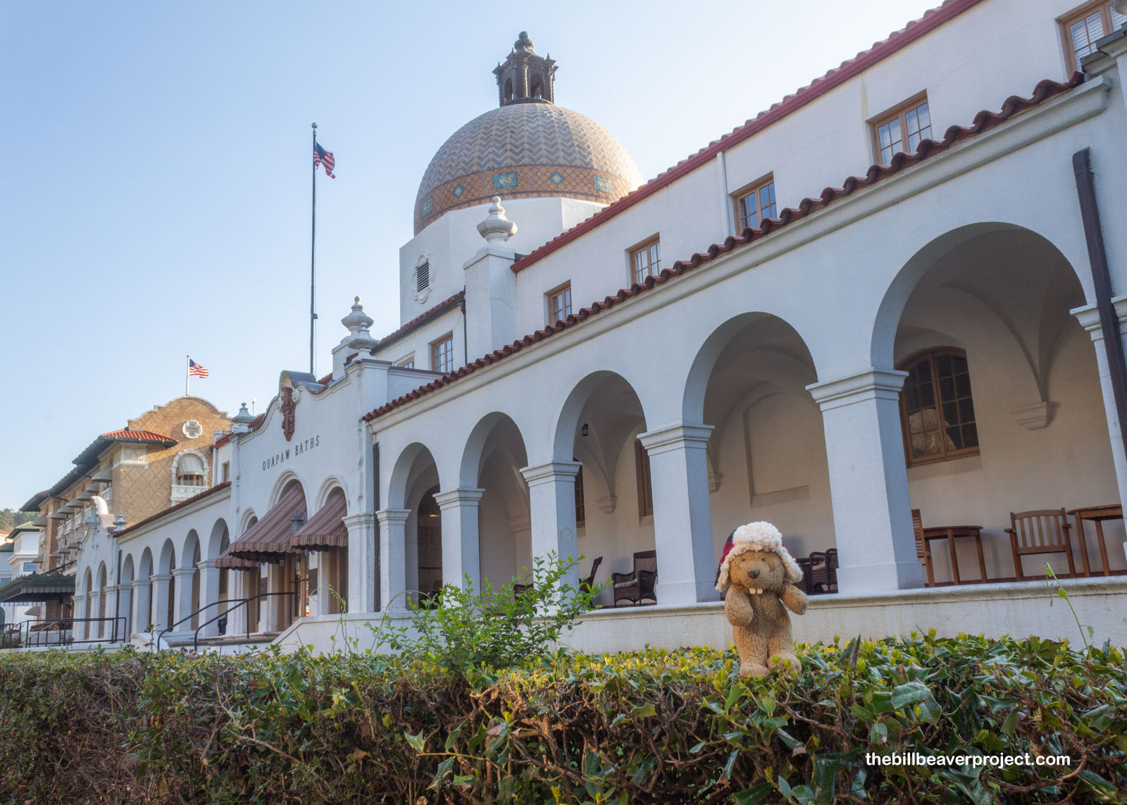 Next to it stood a third Mann & Stern creation, the Quapaw Bathhouse, also opened in 1922 and sporting a magnificent dome! This is the longest house on the row, having been built over two other bathhouses, and today it’s the second bathhouse still in operation. I sure lucked out visiting the Buckstaff earlier, because the line inside the Quapaw was starting to reach out the door!