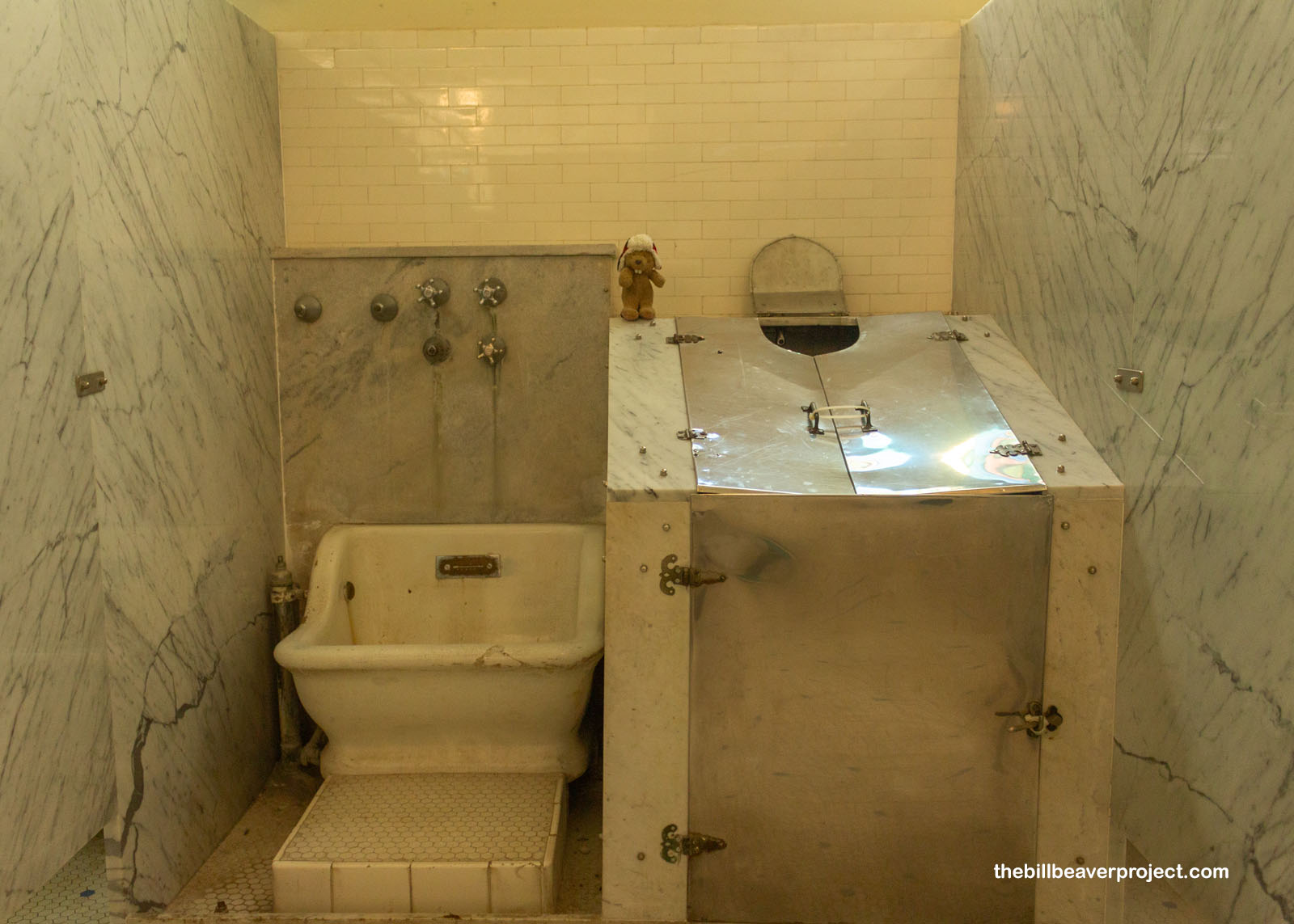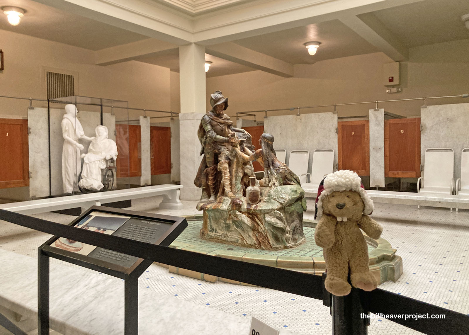 After my soak, Mr. Lawson led me over to a sitz bath (left), which poured warm water down my back for 10 minutes, then five minutes in a vapor cabinet (right)! Vapor cabinets fill up with moist air as hot as 140˚F to induce sweating. The idea was that it would cause the patient to sweat out toxins and maybe be cured of rheumatism, obesity, and even syphilis! Since I didn’t go into the bathhouse with any of those ailments, I couldn’t say for sure if they really worked! But after being thoroughly steamed, I laid out on a table for another lovely 20-minute rest. For this mad rush beaver, that was a wild experience on its own!