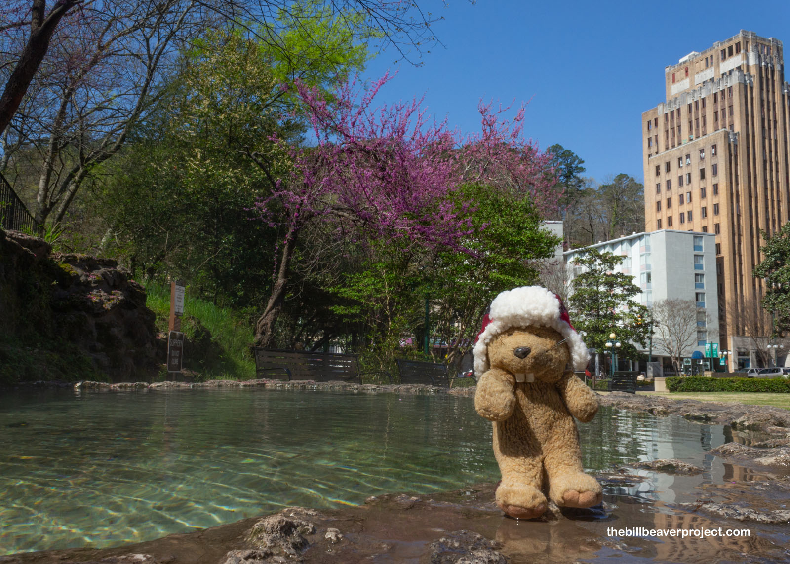 That means it’s time for Firstbud, and after spotting the flowering trees in Little Rock yesterday, I have a hunch that the conditions at my next national park will be just right to celebrate this beaver holiday in style! It’s one of the smallest national parks in the USA, and definitely one of the most unusual ones. It’s Hot Springs National Park, and it was going to be a fine place to kick off this chilly morning!