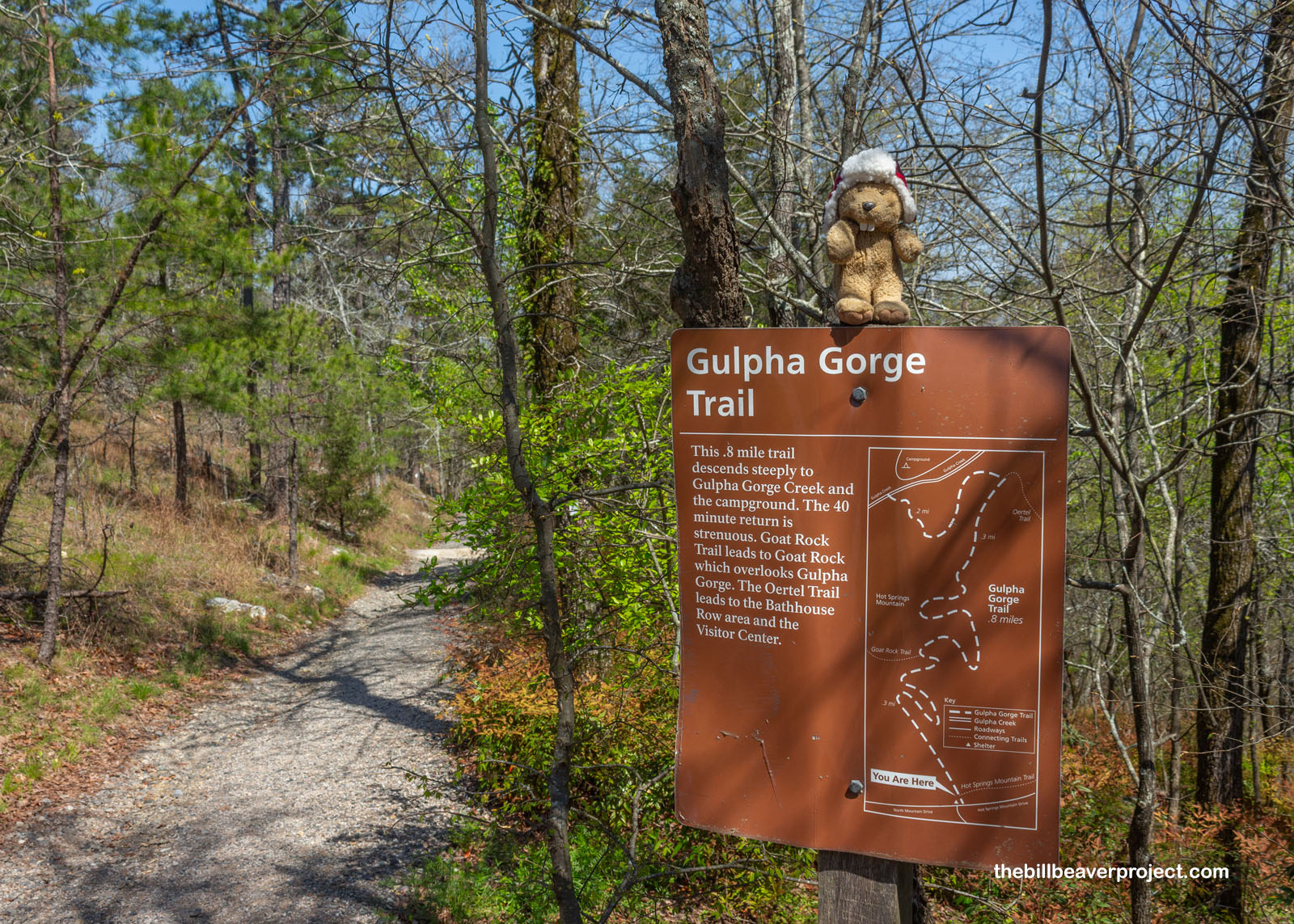 Hot Springs National Park is super unusual in lots of ways, not least of which is the fact that it’s shaped like a donut! The historic heart of Hot Springs, Arkansas is completely surrounded by national park land, which includes 26 miles of hiking trails! Once I’d had a good Firstbud frolic, I wanted to take a little time to explore at least one of these trails. I left Bathhouse Row behind and headed up to North Mountain to look for a good hiking spot!