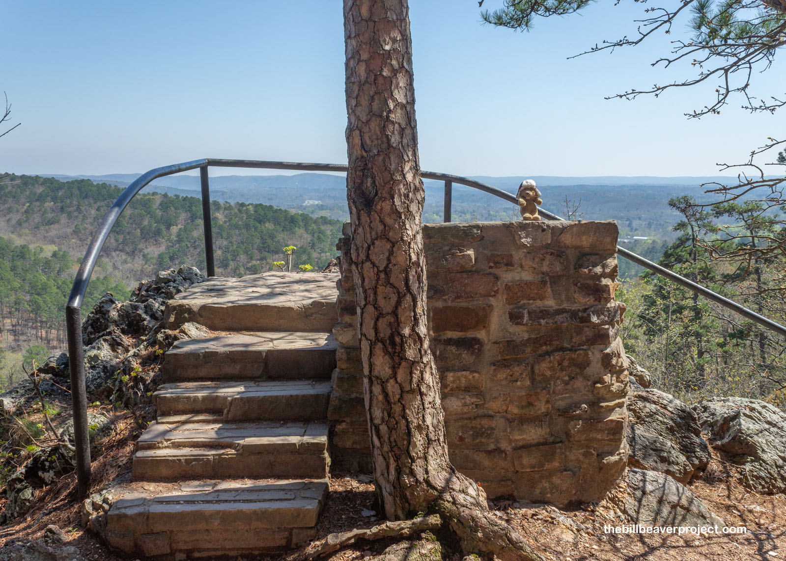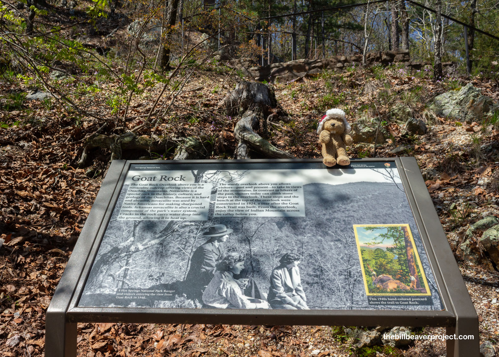 Goat Rock gets its name from a goat that used to live in the novaculite outcrop I was about to visit. The stairs leading up to it, and the bench on top of them all date back to 1924 when the trail system was first being developed here in the park!