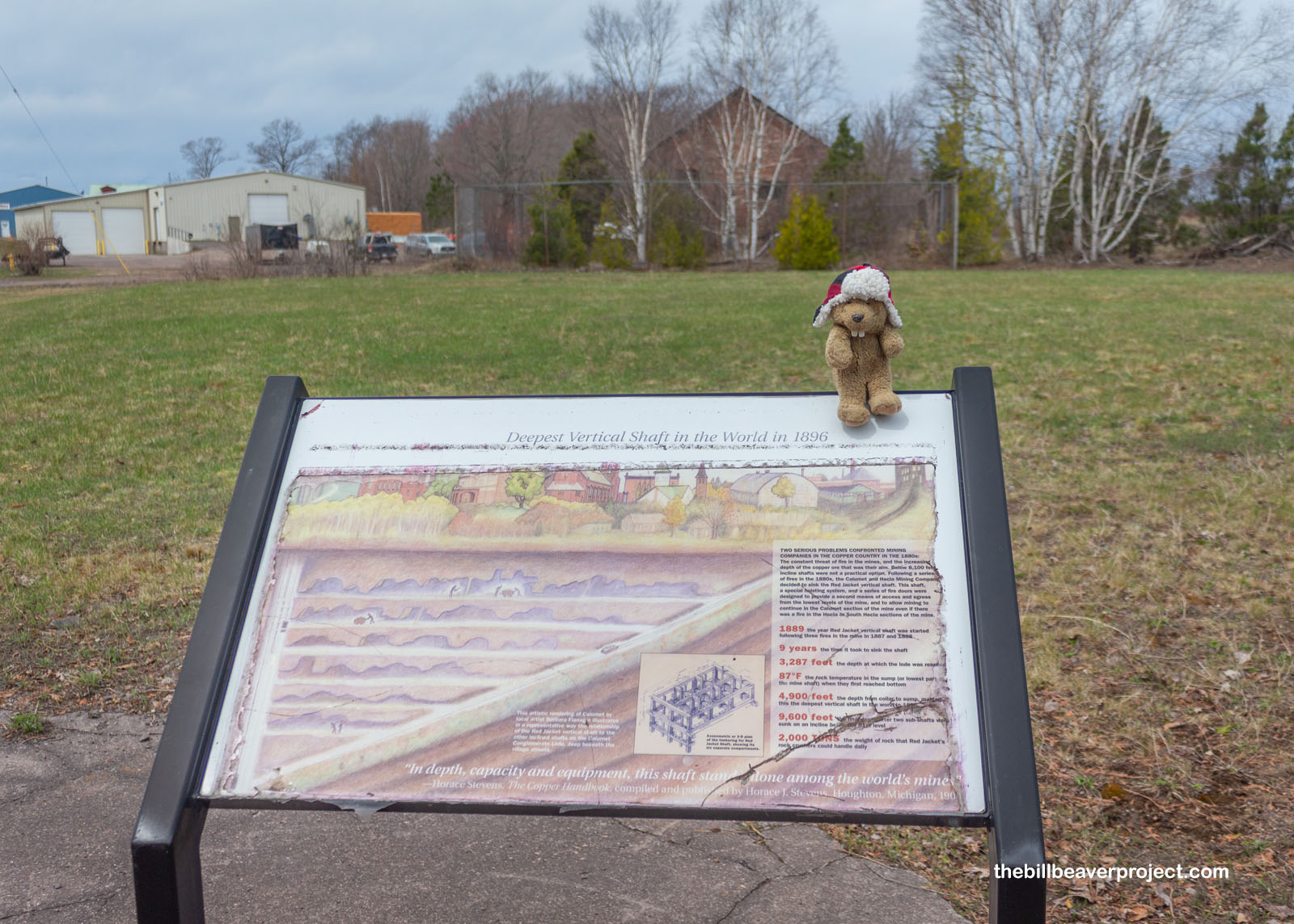 Today, though, there isn’t much to see of this literally groundbreaking mine shaft, which closed in 1939 and was razed during World War II. Today, only one sandstone warehouse remains of what was a large processing plant, the only visual reminder of the Red Jacket Mine!