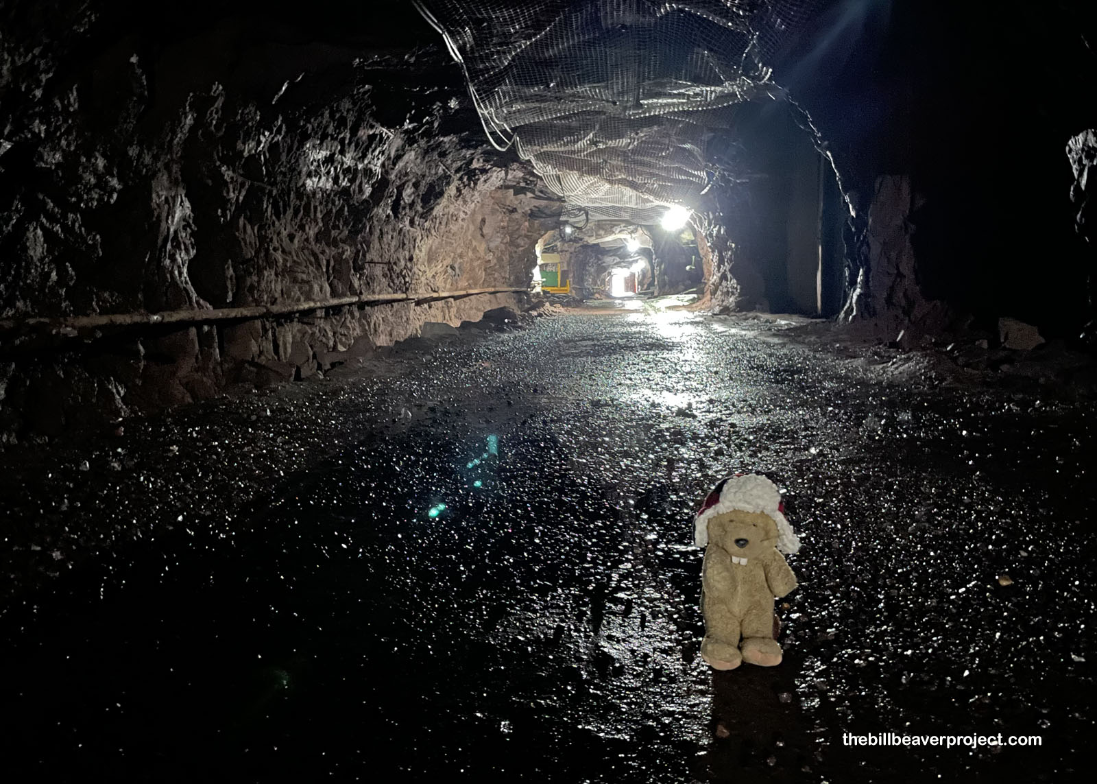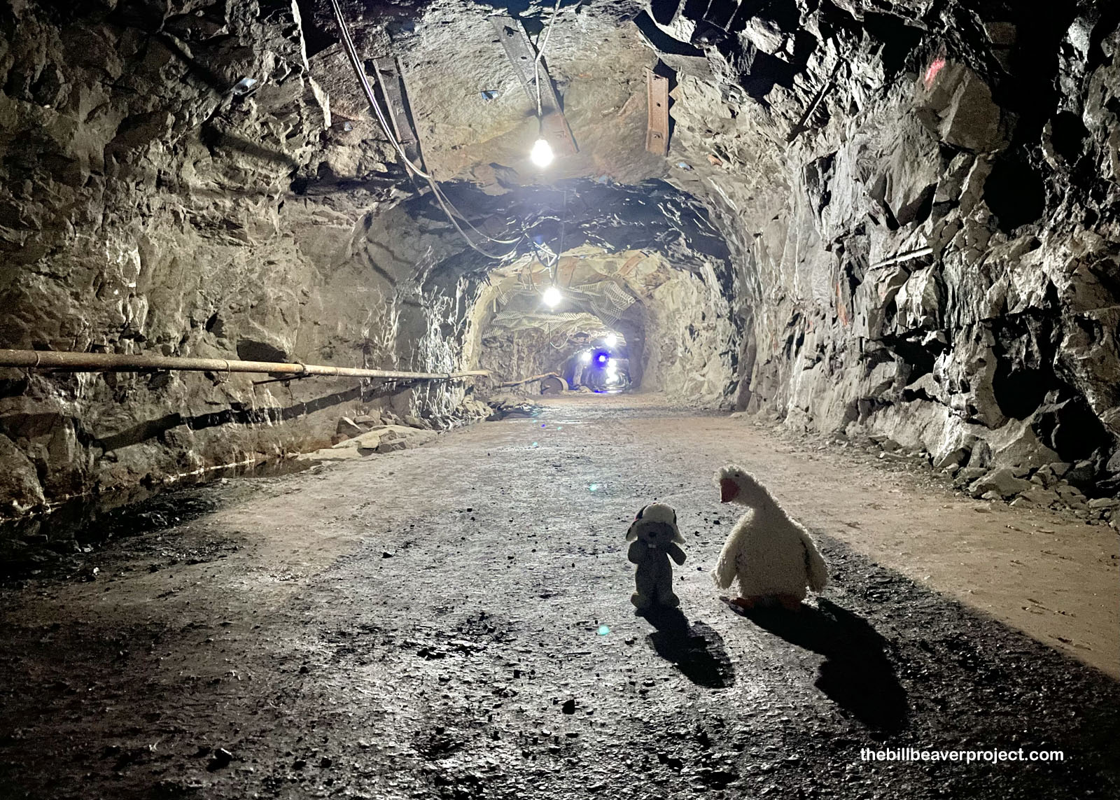 The tour group disembarked from the tram at the mine’s Level 7 entrance. At 325 feet underground, Level 7 out of nearly 90 is far from the deepest, but it is the deepest level that isn’t completely submerged in groundwater! That’s all thanks to this adit, or drain, which was dug into the hillside!