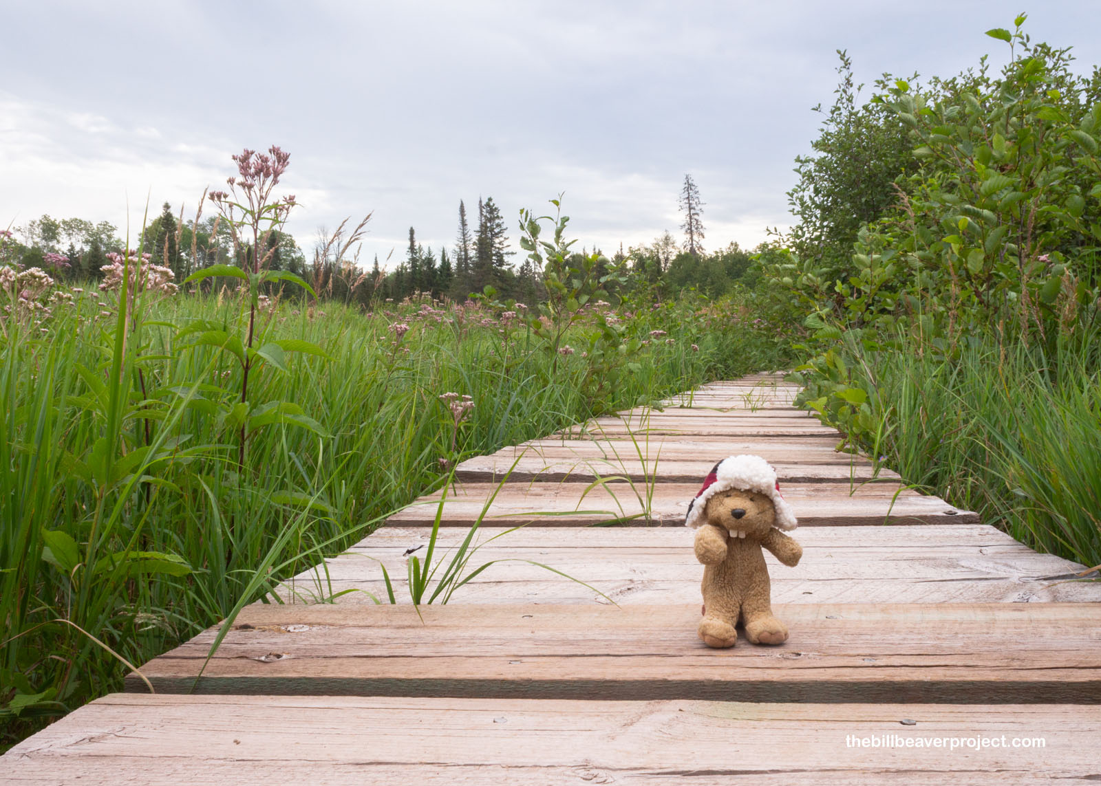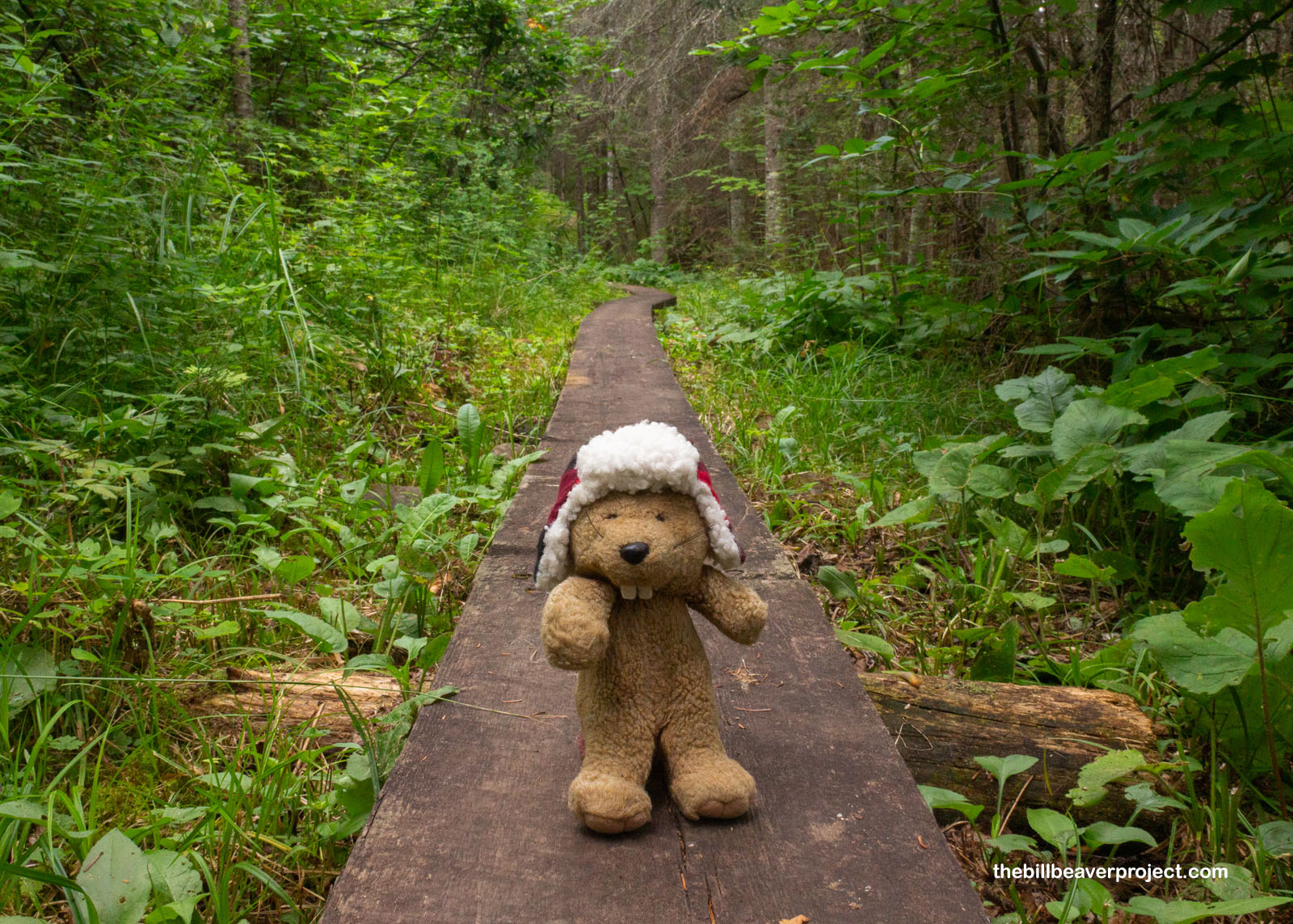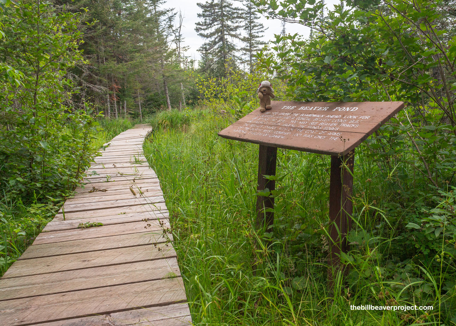 All those bugs crescendoed as the trees cleared up ahead and the trail turned to boardwalk, but I didn’t mind as much here. Why? Because I was witnessing more amazing work by beavers, an entire pond ecosystem created by their hard work! Without beavers, this national monument wouldn’t exist! On this side of the border, the North West Company featured a beaver on their crest, while on the other side of the border, beavers are downright revered! They’re an official symbol of Canada and were even featured on that nation’s very first postage stamp, circa 1851!