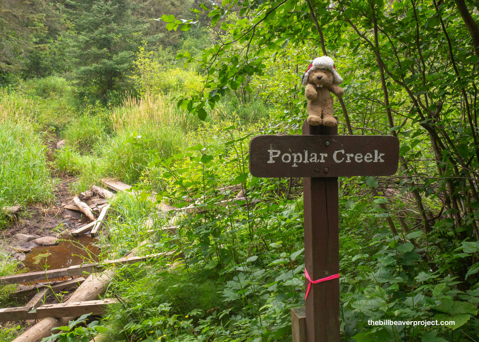 What might not have been clear to human hikers was obvious to me: beavers build really strong structures! While the human bridge had fallen to shambles, these mighty rodents had created a super sturdy dam that could withstand all kinds of pressures. This is what I used to cross Poplar Creek, shouting “Thank you!” through the layers of sticks and mud. I hope they heard me!
