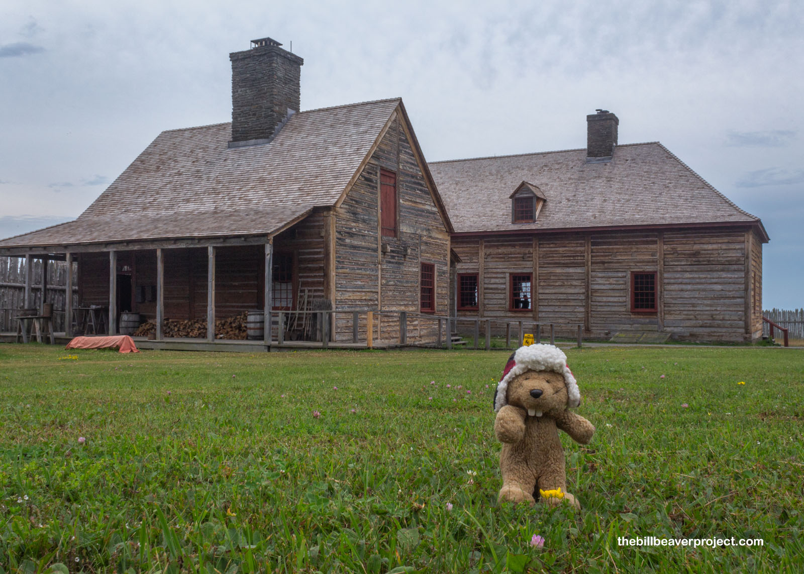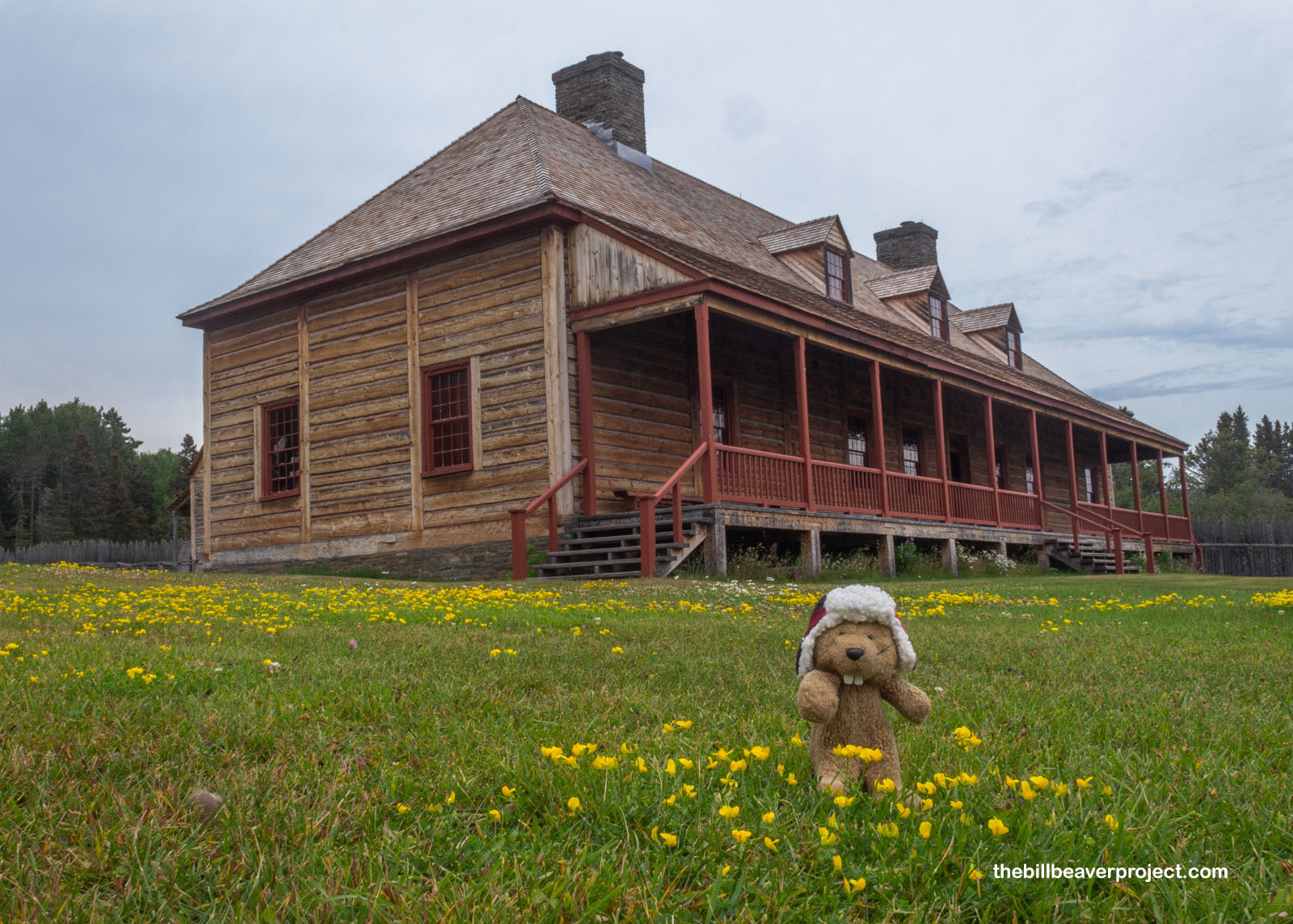 The Great Hall was originally built in 1780, a place for North West shareholders to meet and for hosting social events like the annual summer rendezvous in what was then a very remote place! Its foundation was rediscovered by archeologist, Ralph Brown, in 1937, and it was reconstructed by 1940 with lots of inaccurate parts, like a sandwich shop! That building burned down in a lightning storm in 1969 and was rebuilt again in 1973 with no sandwich shop but an authentic post-on-sill (pieces-sur-pieces) style!