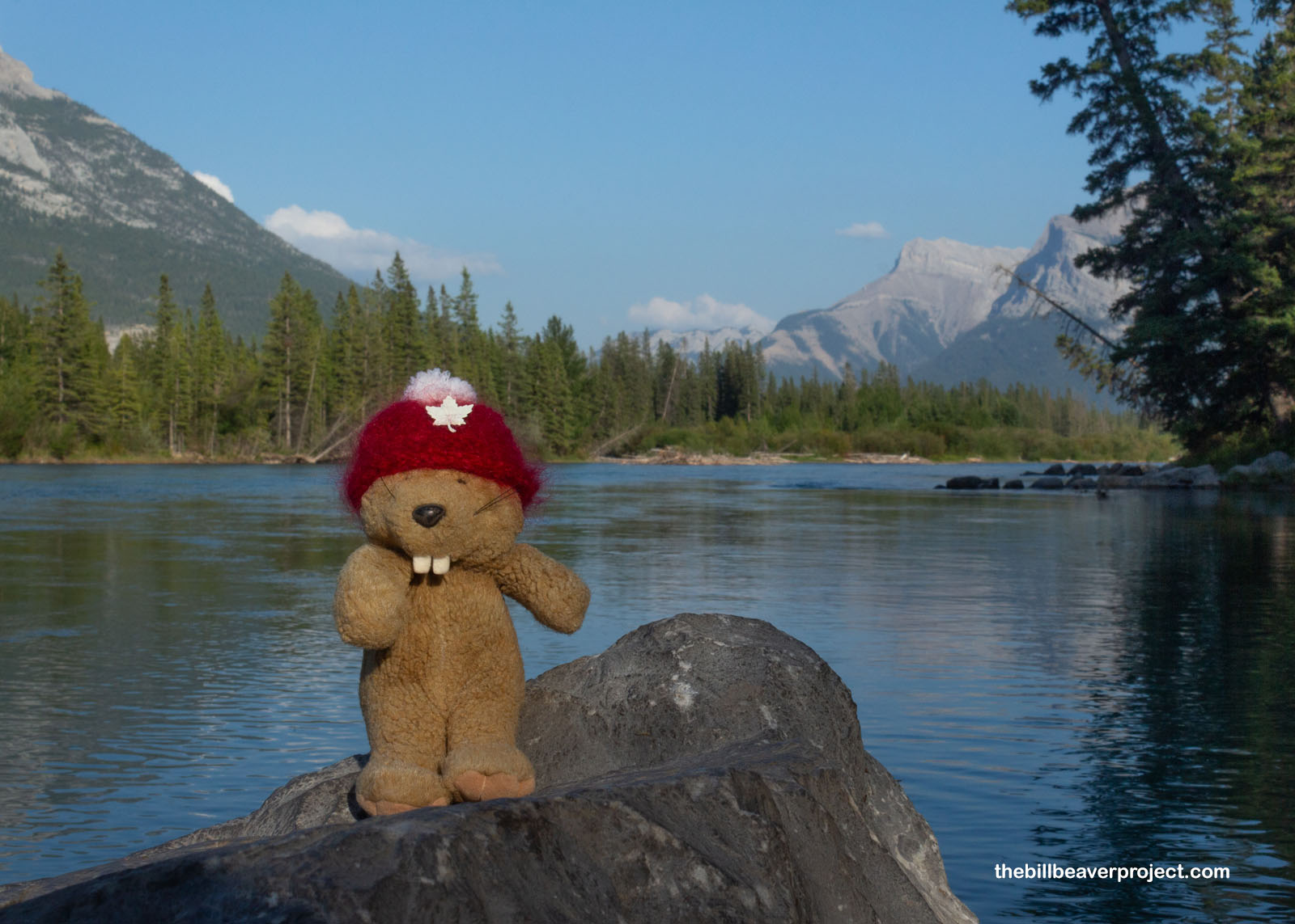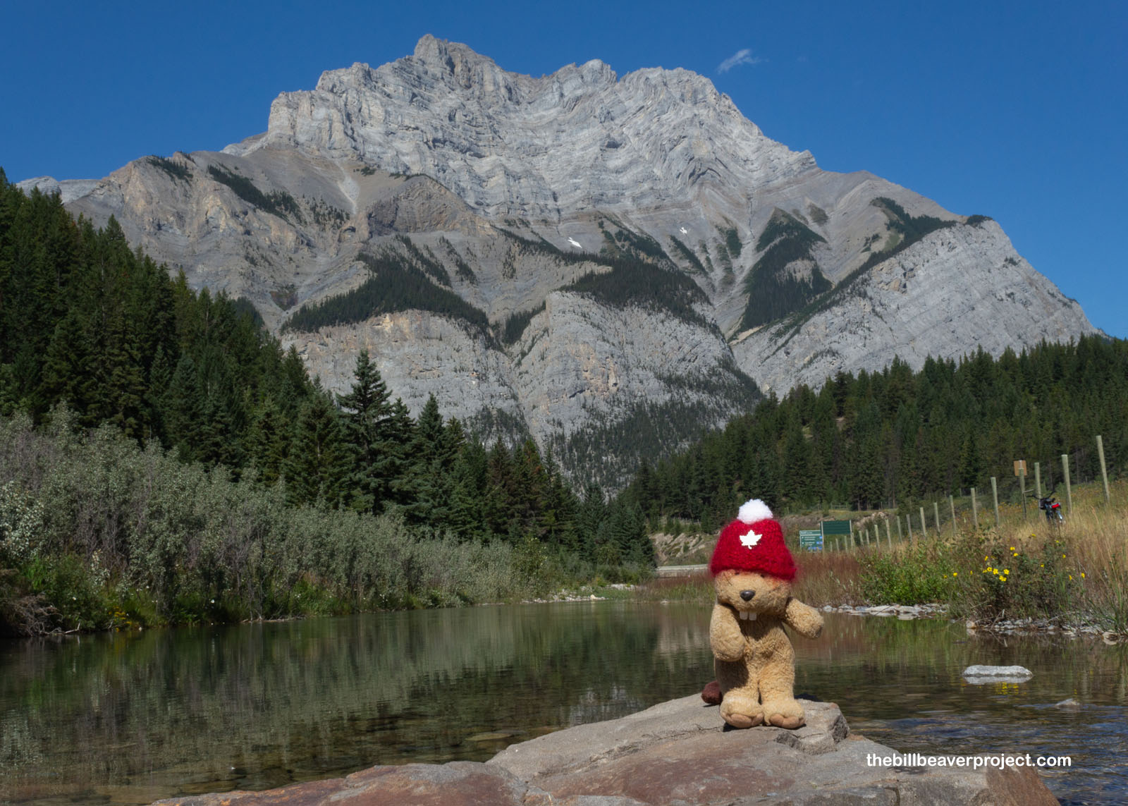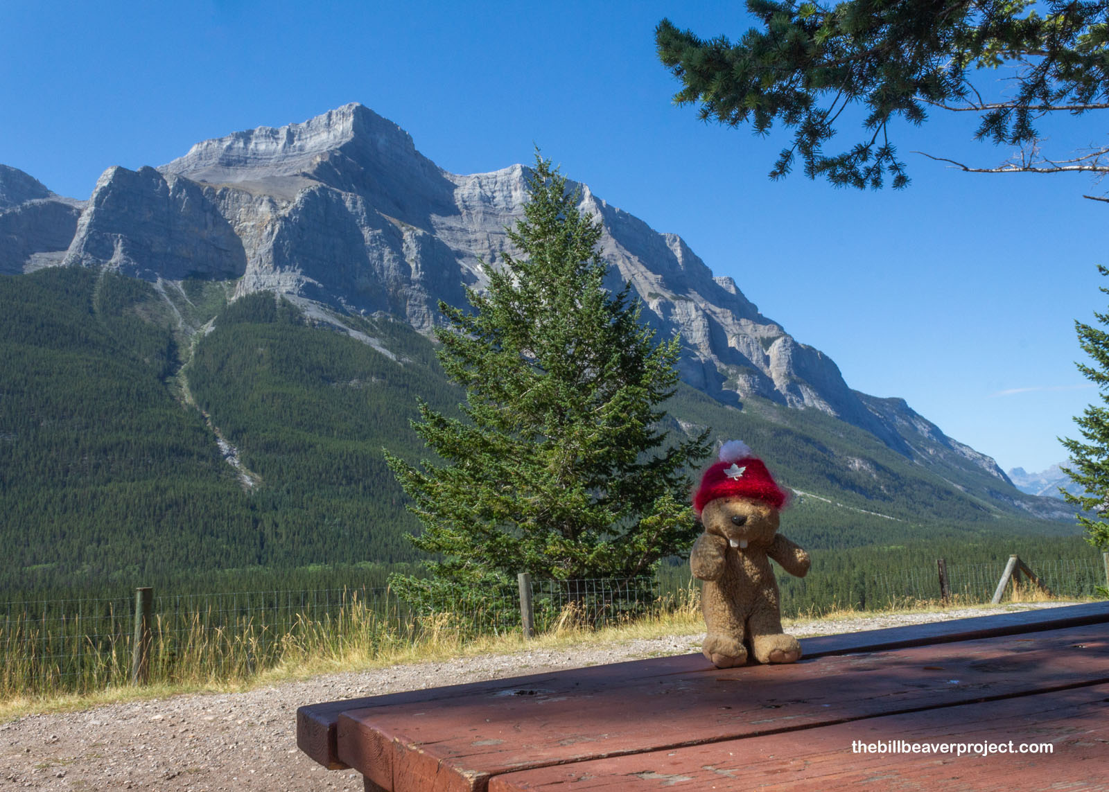 Once we settled, it sure was nice to take a breather after all the flying and splashing around the last few days. Our campsite was really close to the Bow River, which offered up some fine views of the surrounding mountains. This range is chock-full of national parks, so full, in fact, that it’s honored by UNESCO! Think that’s cool? Well, the symbol of Canada’s national parks is… a beaver. This beaver was just itching for adventure, though that could have also been from the mosquitoes.