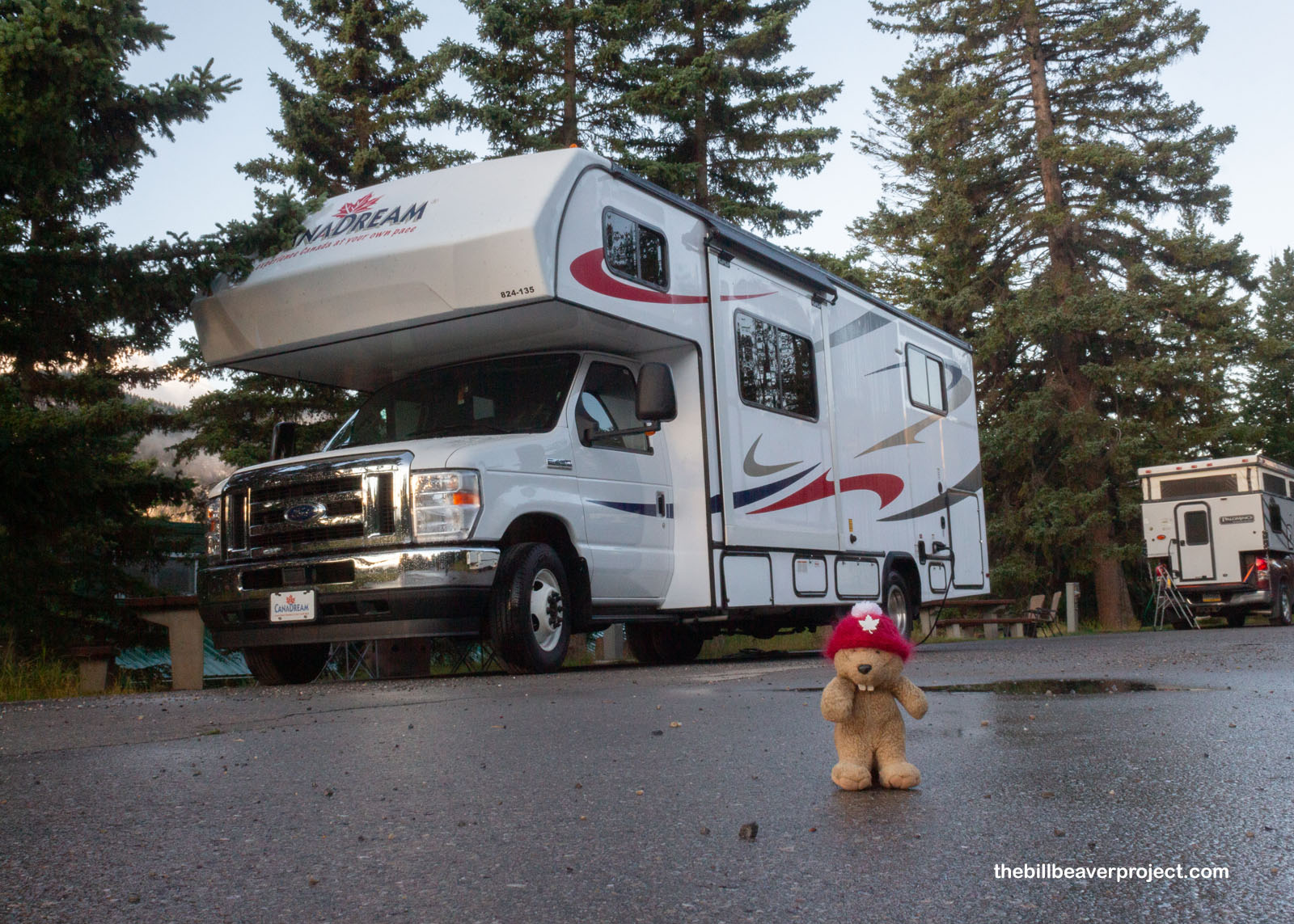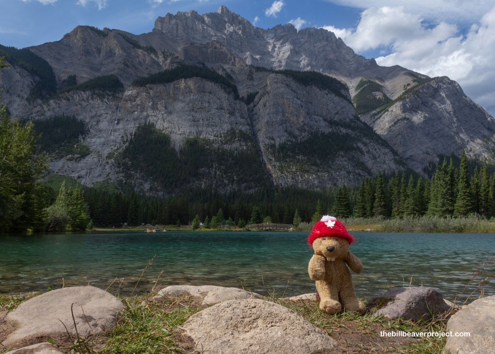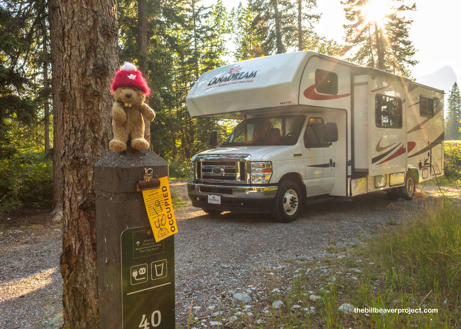 Once we settled, it sure was nice to take a breather after all the flying and splashing around the last few days. Our campsite was really close to the Bow River, which offered up some fine views of the surrounding mountains. This range is chock-full of national parks, so full, in fact, that it’s honored by UNESCO! Think that’s cool? Well, the symbol of Canada’s national parks is… a beaver. This beaver was just itching for adventure, though that could have also been from the mosquitoes.