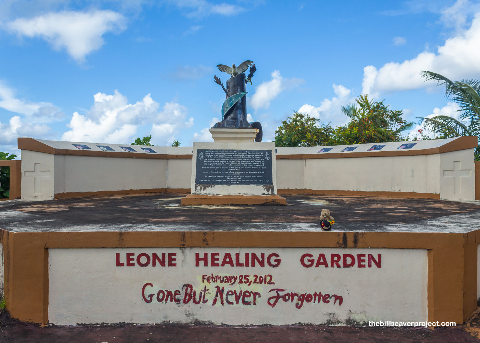 While I’d journeyed east the last few days, today, I went west to explore the town of Leone, formerly the island’s capital! Here, I went looking for historic sites like the Fagalele Boys School (now a private home), Atauloma Girls School (somewhere behind a private home), and the Leone Petroglyphs (somewhere behind a cluster of homes and a pack of very grumpy feral dogs)! But because it was Sunday, and the whole city was in church, there was no one around to ask for directions. So I bookmarked my visit by admiring the Leone Healing Garden, a memorial to the 11 residents lost in a tsunami back in 2009.