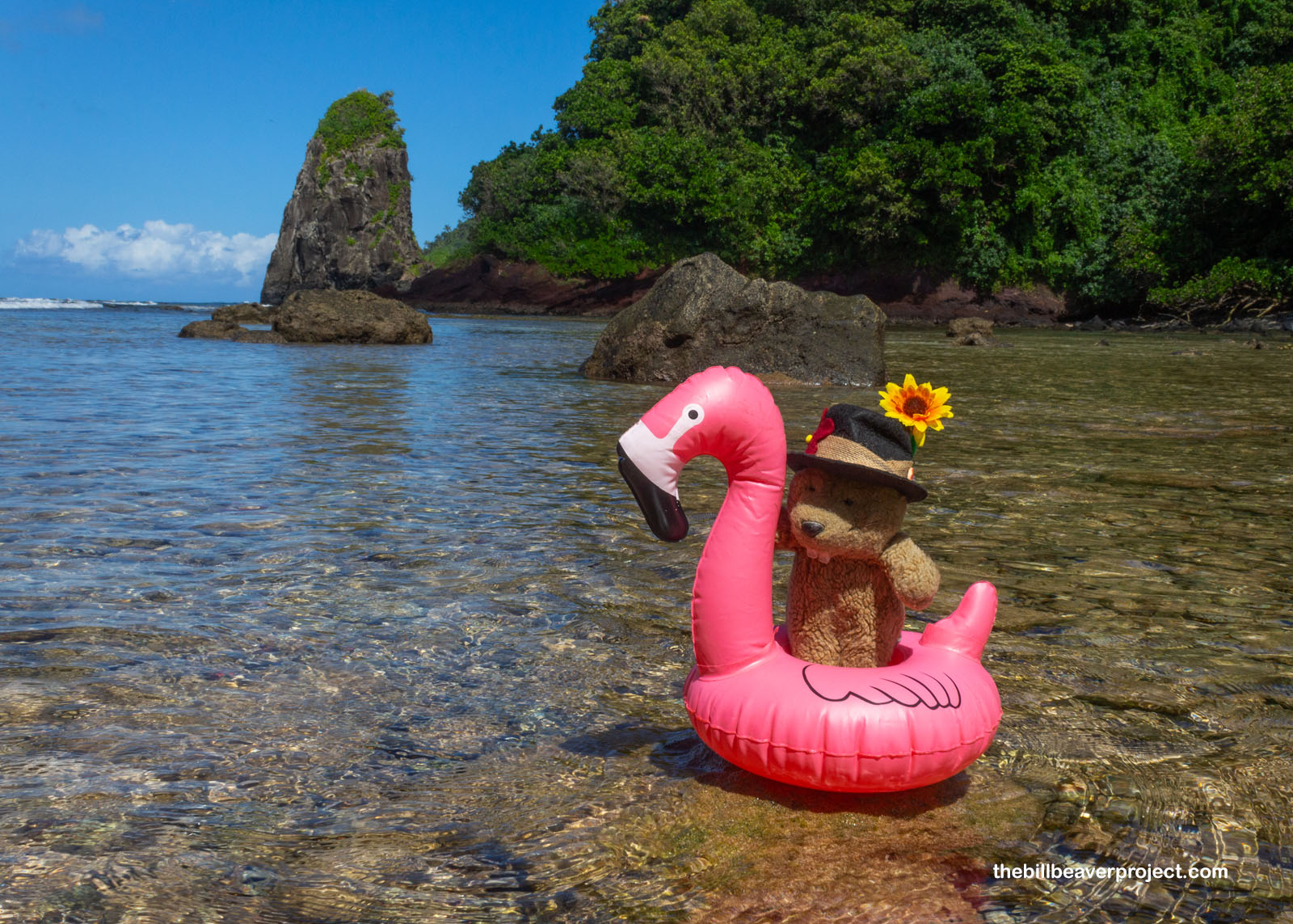 Samoan waves are intimidating, but as my last stroke of luck would have it, the channel between shore and the island was both shallow and calm. So, even though I failed to bring my dive suit on this trip, I was glad I remembered my flamingo floatie! Angling it with the current, I floated all the way across the channel until I was directly under the chatty bats and could get a much clearer look at Cape Taputapu!