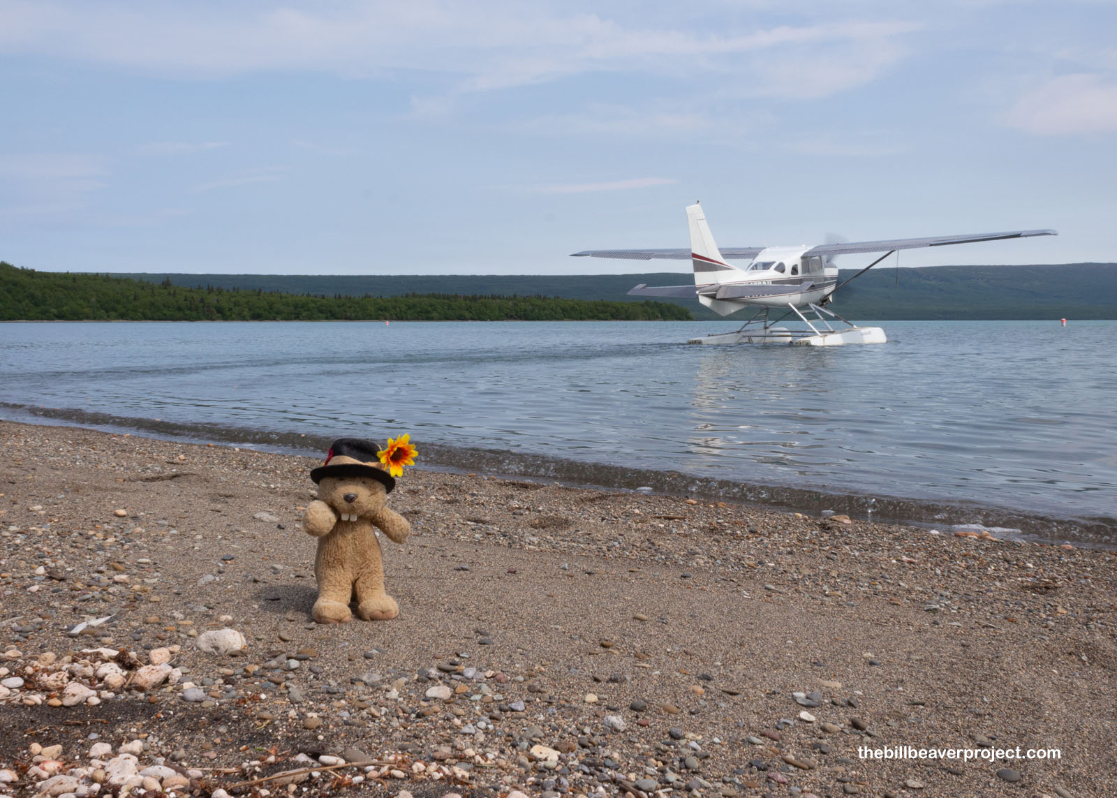 Ian and Michael were expert pilots, and about twenty minutes later, they turned and headed down toward the vast, glassy surface of Naknek Lake, making the smoothest-as-butter landing, the likes of which would make the most seasoned airline pilot blush! The plane motored in to the shore, using the rudders attached to the back of the floats to steer, then backed in as easily as a sedan in a shopping mall parking lot!