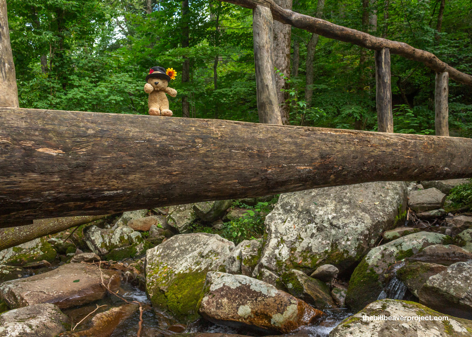From here, the trail got really neat with switchbacks and boulders through the cool forest, and a single-log bridge over the creek! Somewhere in the water below, there could have been salamanders, but we didn’t stop to flip stones—this can harm salamanders anyway. The Great Smoky Mountains are known as the “Salamander Capital of the World,” boasting no fewer than 31 different species from the tiny, 2-inch pygmy salamander (Desmognathus wrighti) to the massive, 2-foot Eastern hellbender (Cryptobranchus alleganiensis alleganiensis)! The rivers and streams of the Great Smoky Mountains contain more salamanders than any other place on Earth, one of many reasons this region is recognized by UNESCO!
