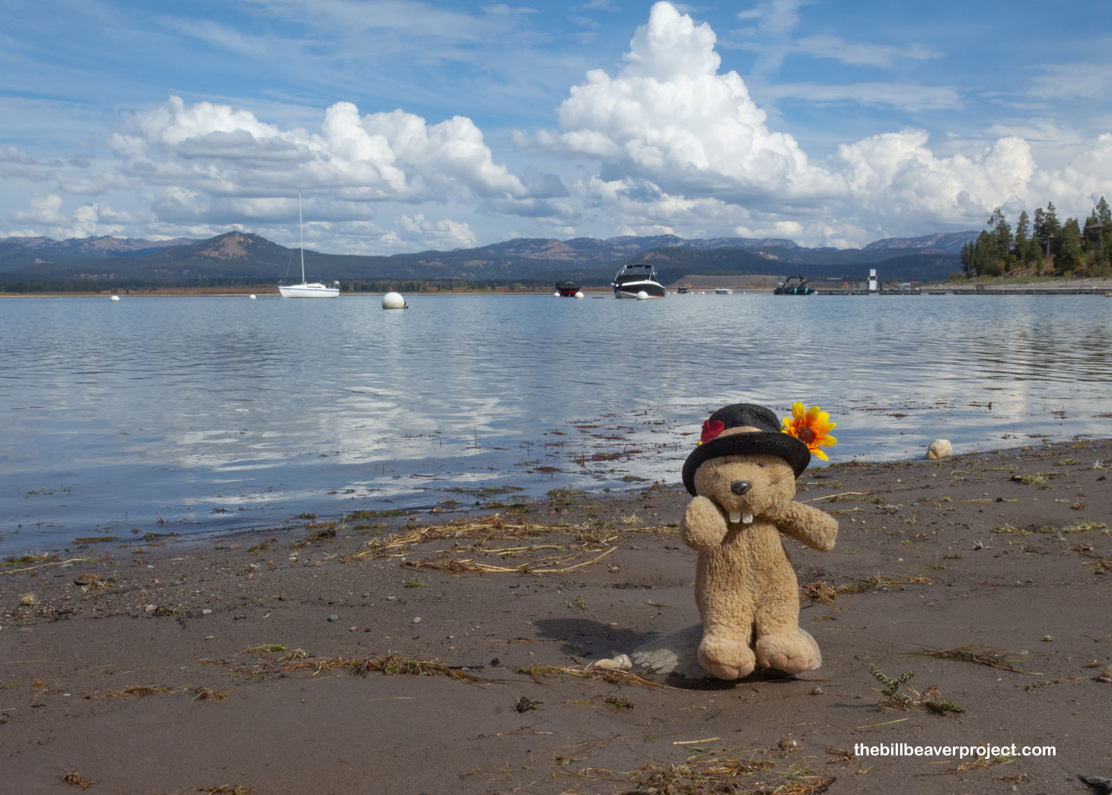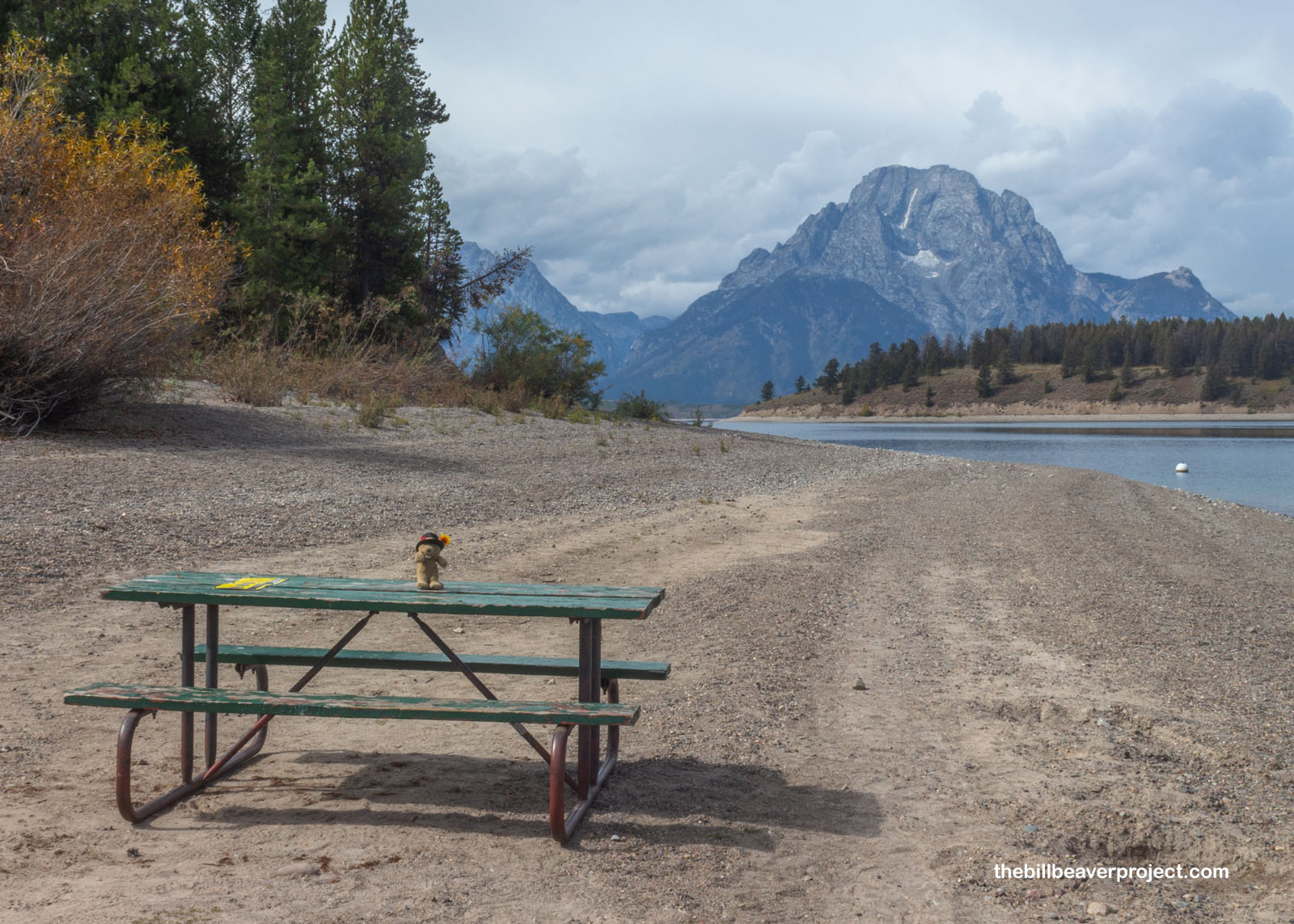 But true Lastleaf frolic requires being down on the water, and there was no good access from Oxbow Bend. Instead, we rounded the apex of the road loop and made for the Signal Mountain Campground on the shore of Jackson Lake, one of the largest high-altitude lakes in the USA! Terri said she used to come up here and go camping on the island just offshore! That would have been fun, had any of us packed tents! I guess hindsight really is 20/20!